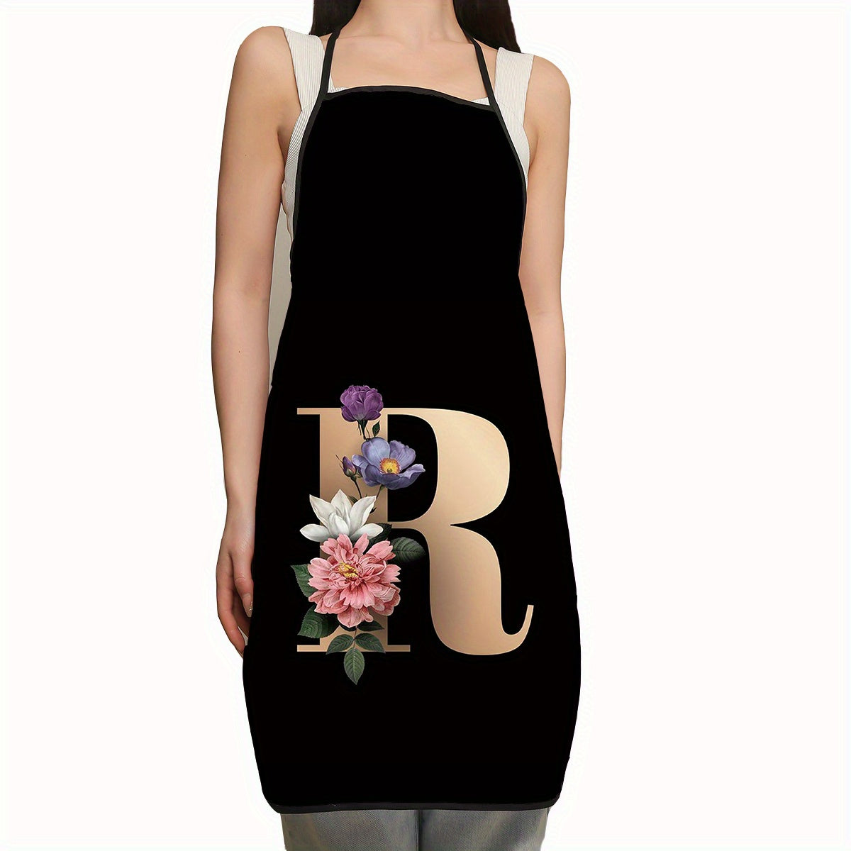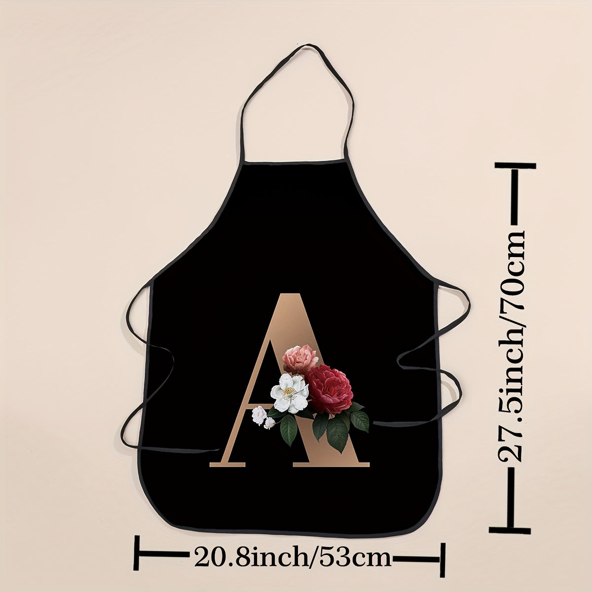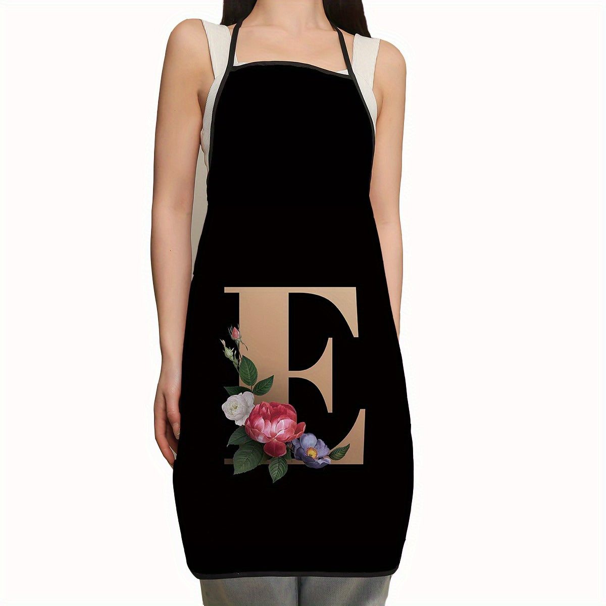 Polyester Apron with Adjustable Suspenders and Letter Flower Pattern for Restaurant Waiters and Chefs