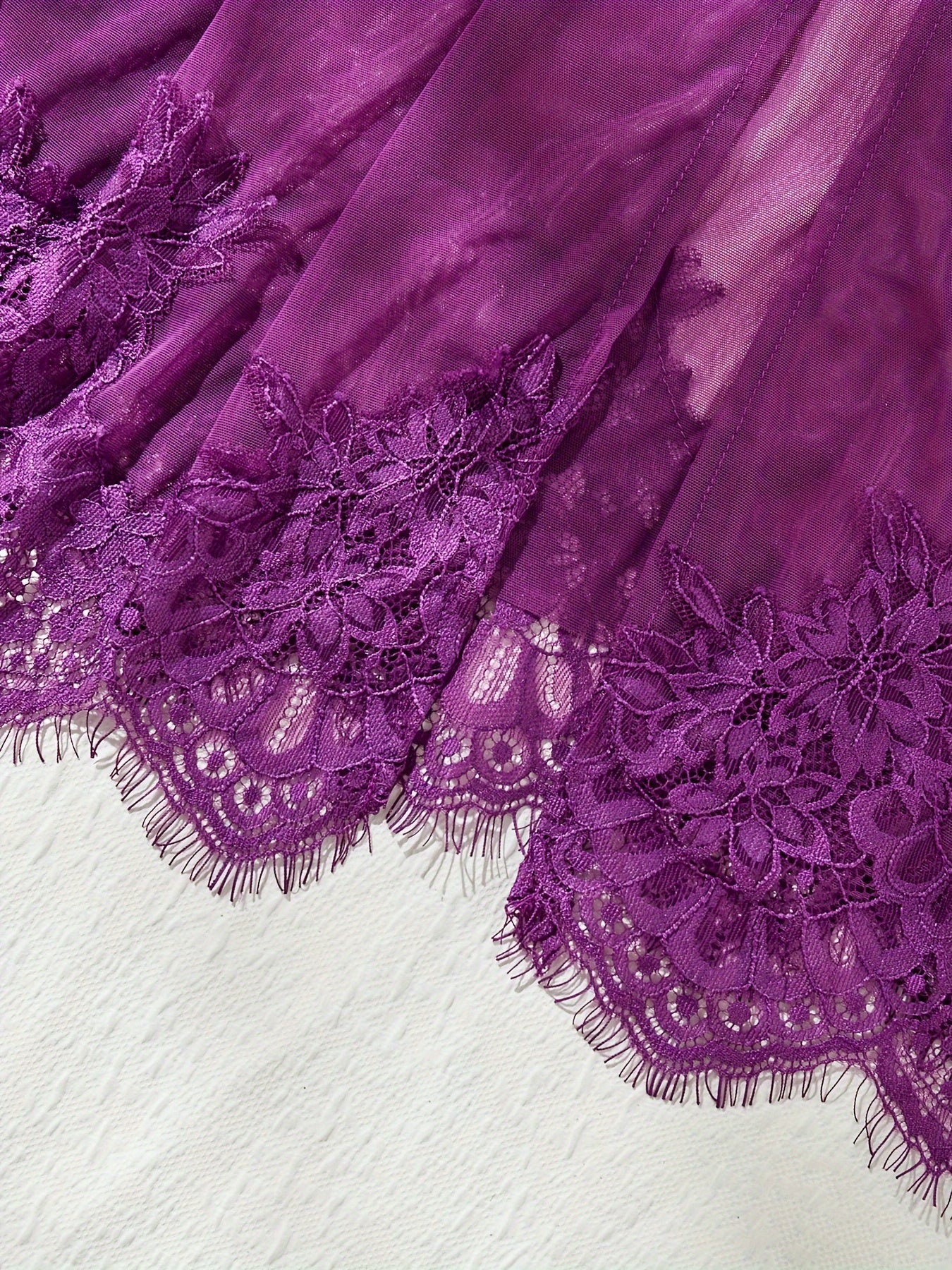 Polyester Babydoll Lingerie with Mesh, Lace Trim and Tie Closure