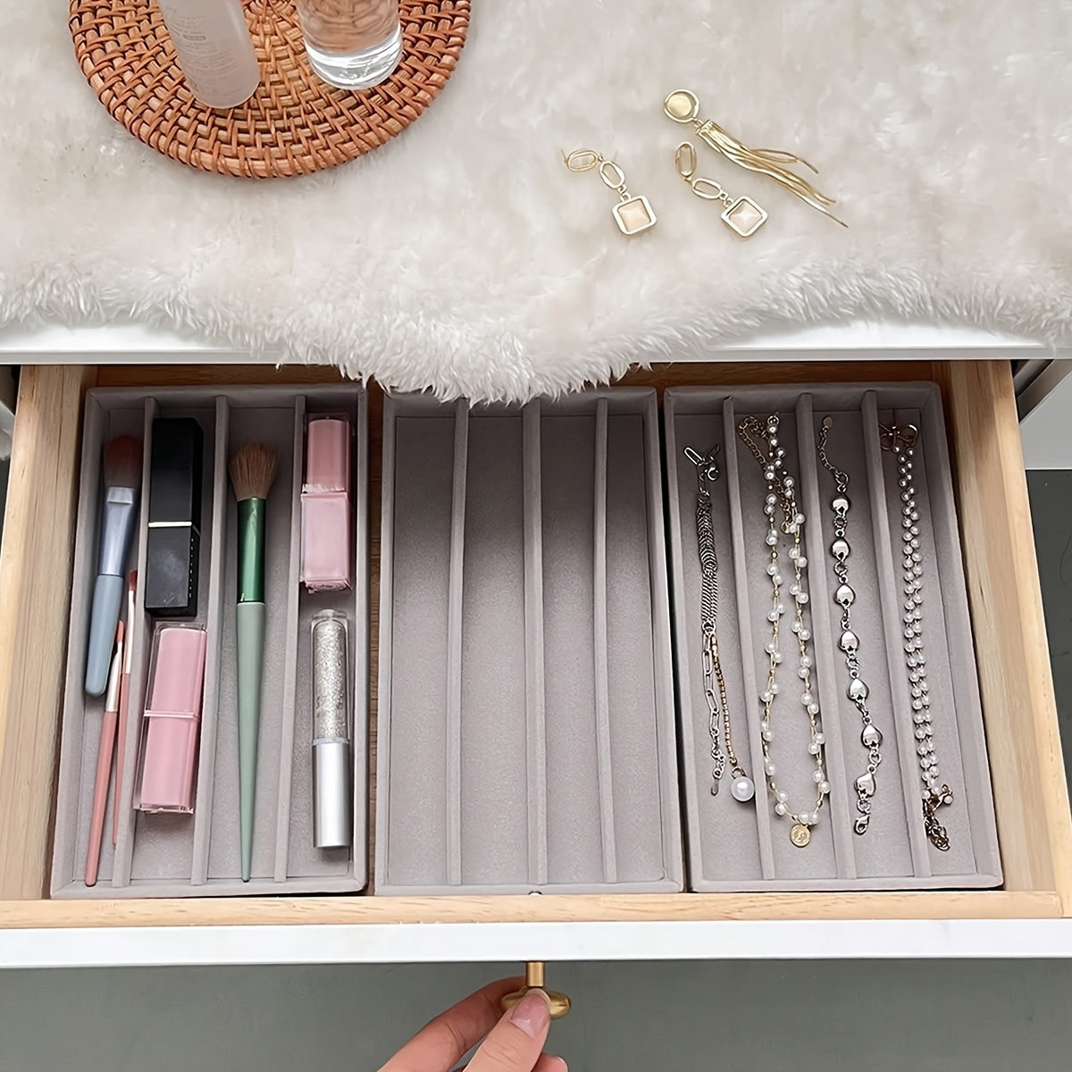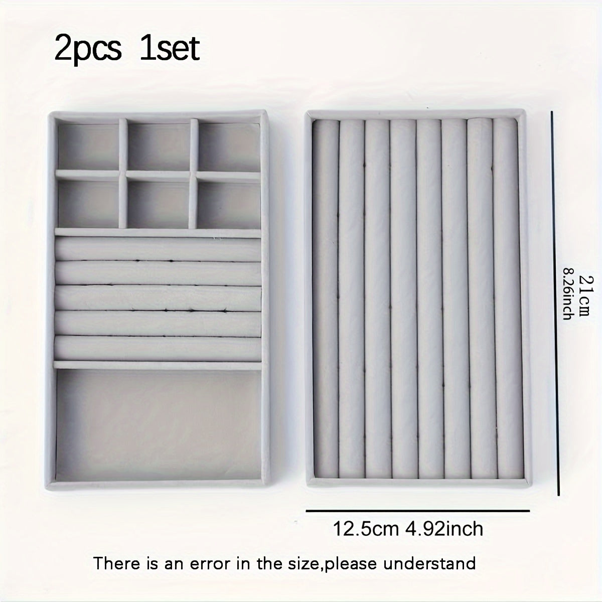 Jewelry Organizer Set with Velvet-Lined Tray and Compartments for Rings Earrings and Necklaces