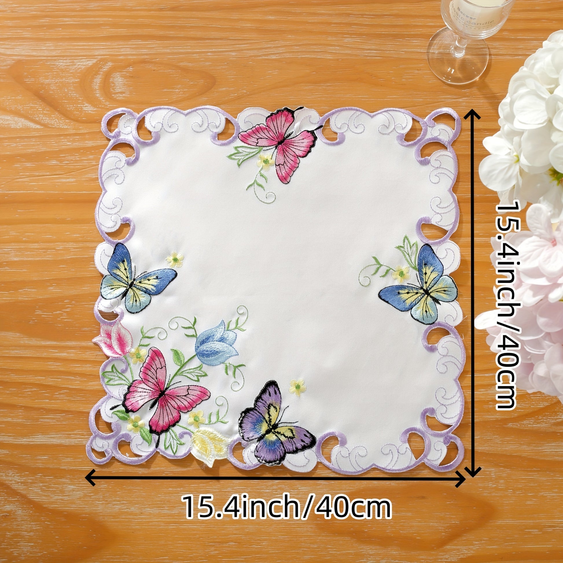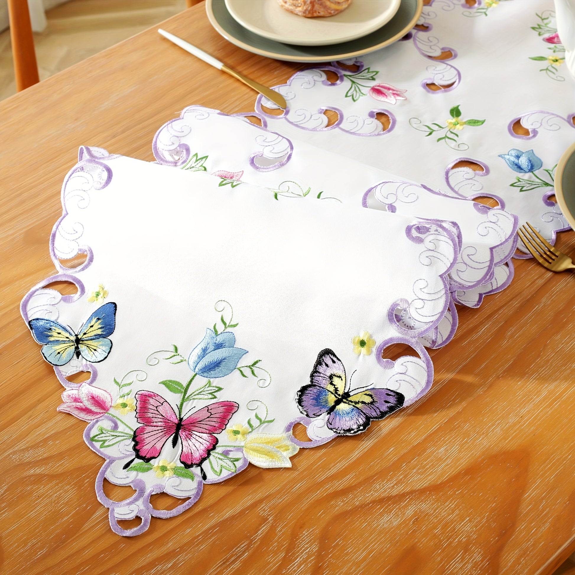 Polyester Table Runner with Butterfly and Flower Embroidery for Home Party Decor