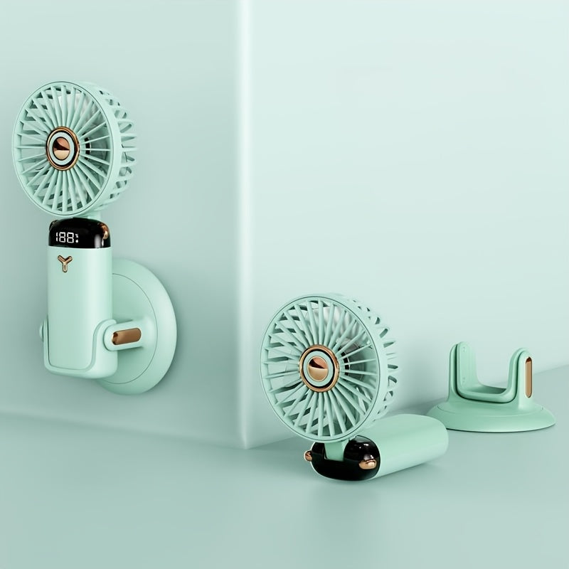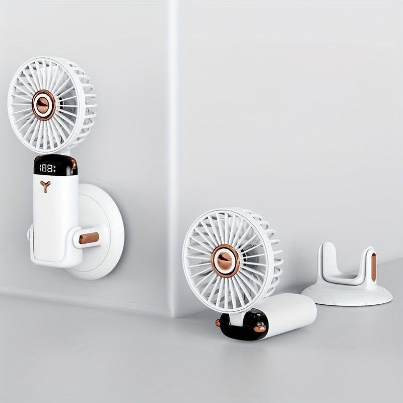 Portable Fan with LED Display 5 Speeds Foldable Dual USB Rechargeable Lithium Battery for Desk Office Bedroom Outdoor Travel Camping