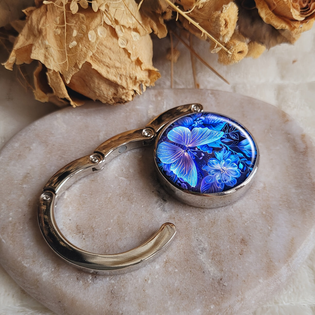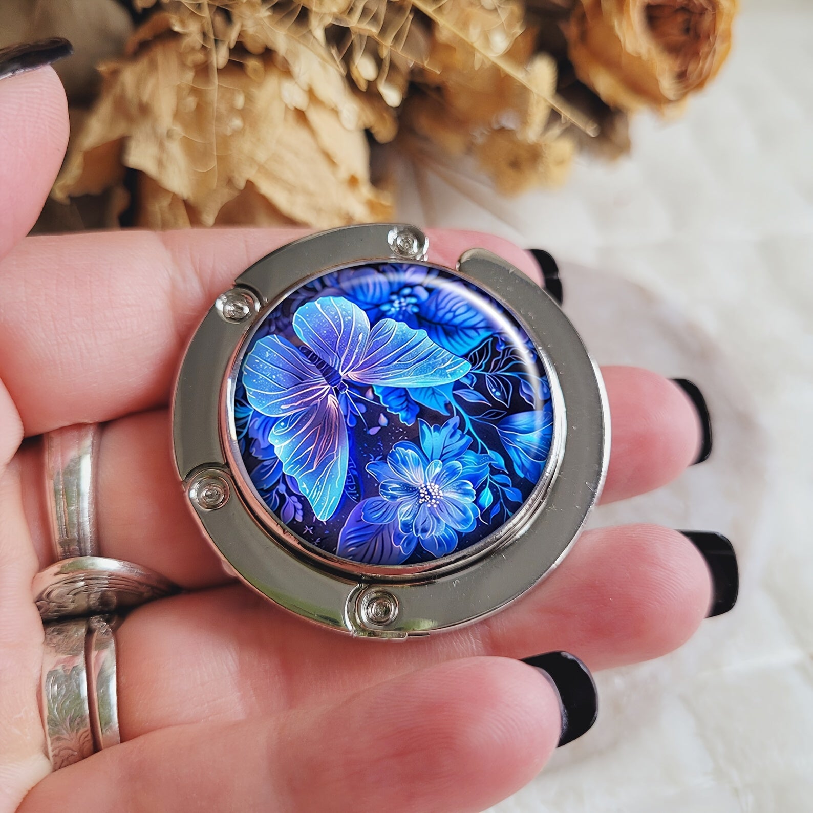 Portable Folding Handbag Hook Blue Butterfly Table Purse Hanger Bag Holder