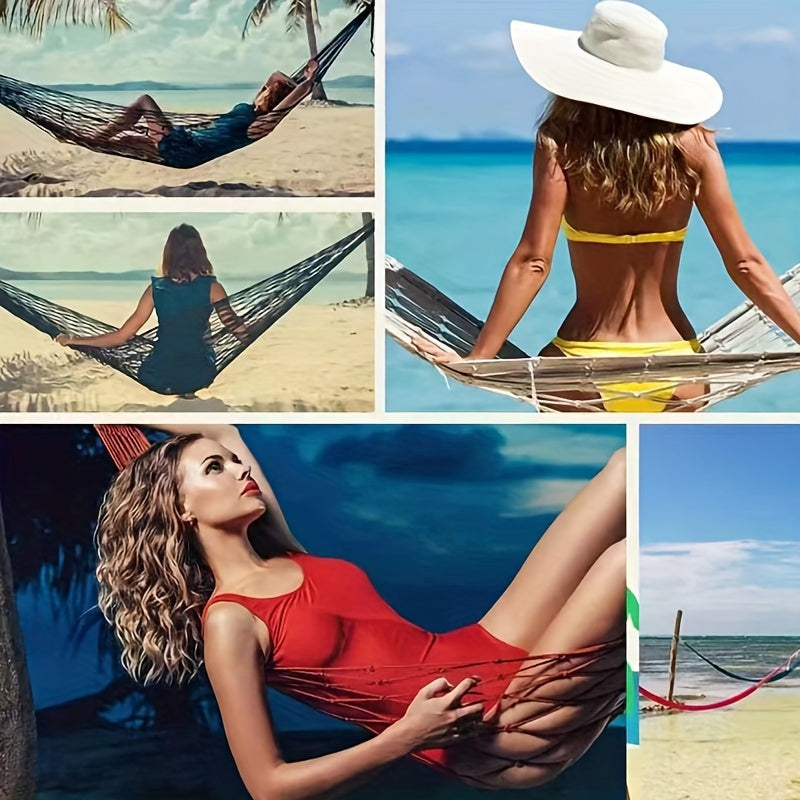 Portable Nylon Hammock Net with Hooks for Camping Beach Garden Outdoor Use