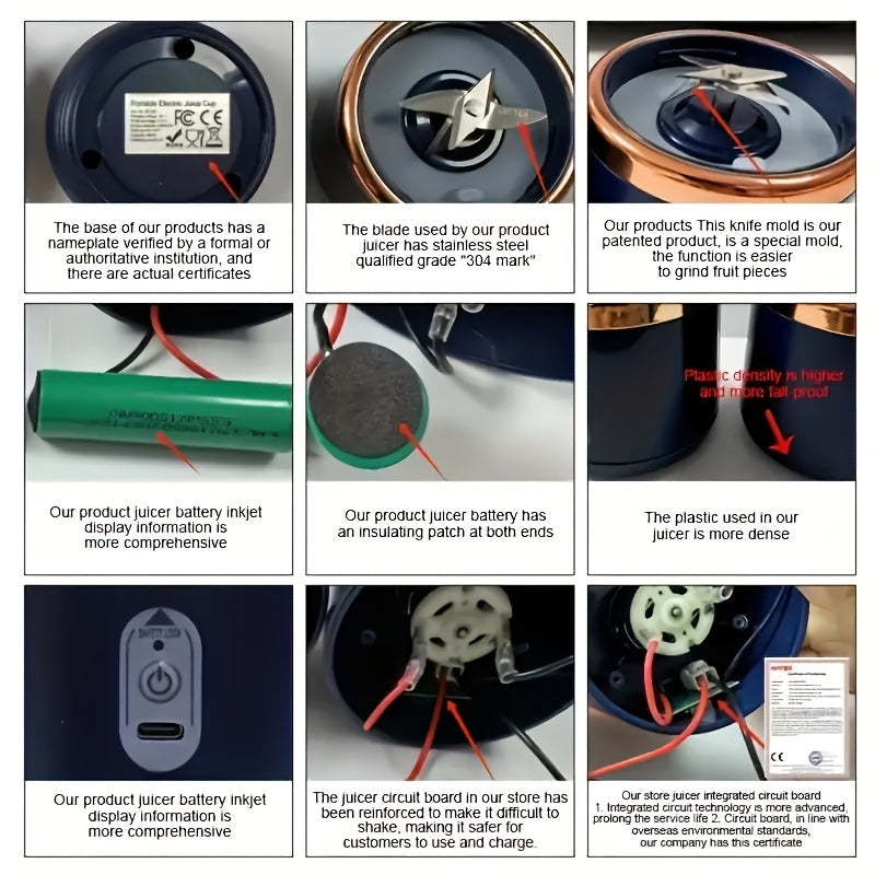 Portable Juicer Cup Rechargeable USB Powered 1500mAh Battery for Travel