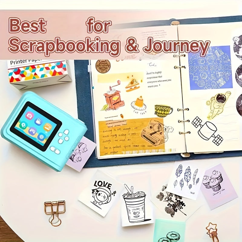 Portable Mini Camera Photo Printer with 6.1cm Screen USB Rechargeable 1080P Video 48MP MP3 Playback Thermal Monochrome Printing Smartphone Compatible