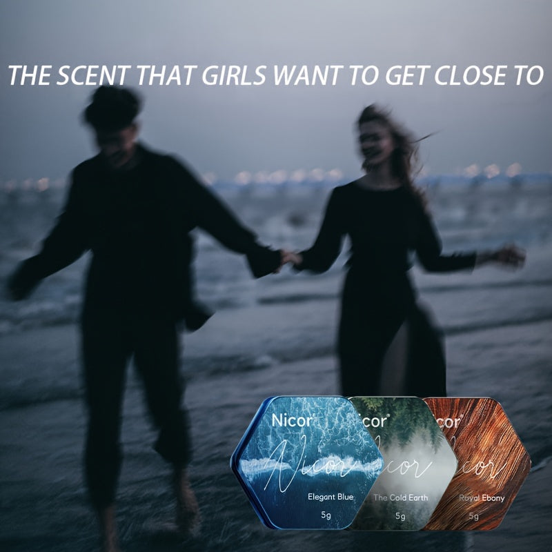 Men's Solid Perfume Stick with Long-Lasting Herbal Woody Fragrance and Moisturizing Squalane