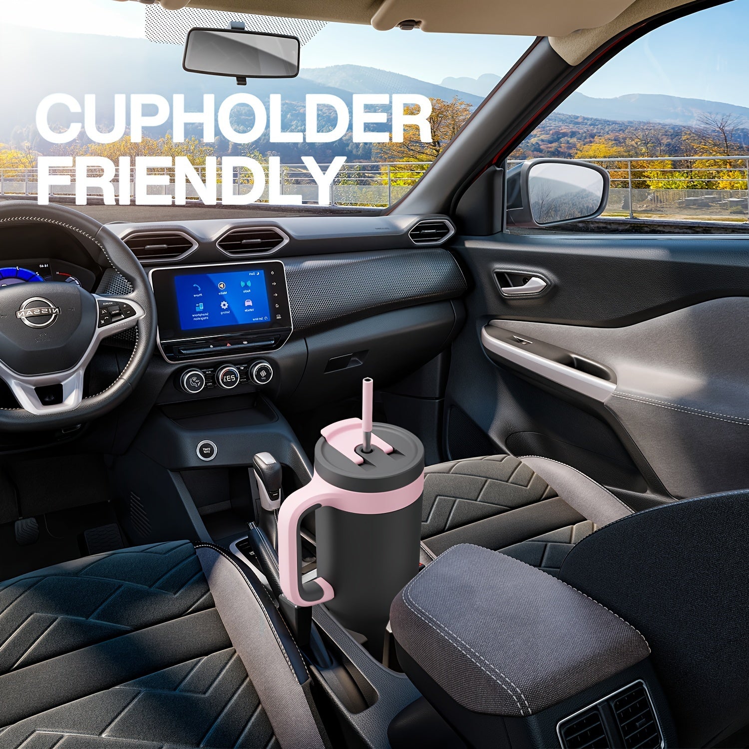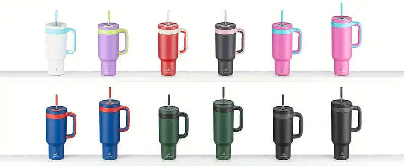 50oz Insulated Stainless Steel Tumbler with Dual Handles Leakproof Sip Lid Keeps Drinks Cold 34 Hours