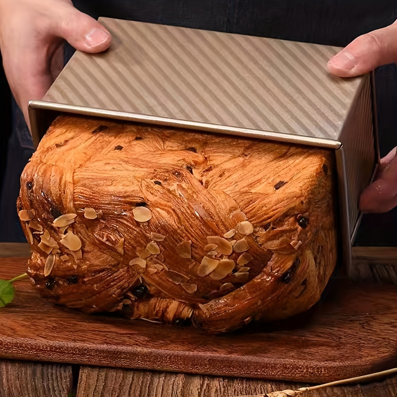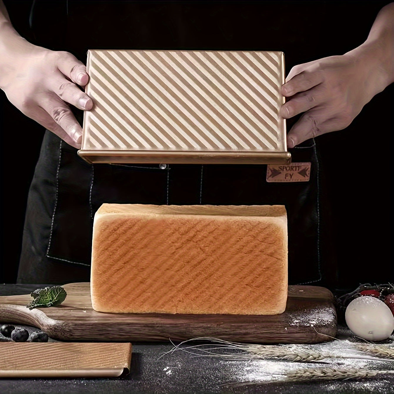 1-Piece 450g Carbon Steel Loaf Pan with Lid Non-Stick Ridges for Bread Baking