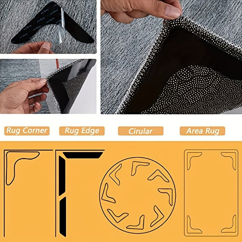 Black Non-Slip Carpet Clips Set for Living Room, Dining Room, Bathroom