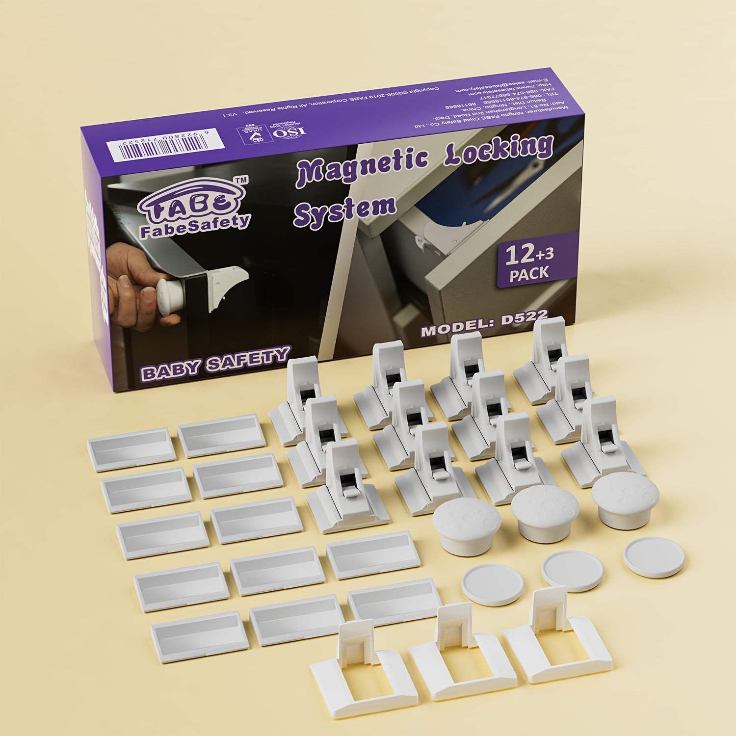 Child Safety Locks Set of 12 Magnetic Cabinet Locks with 2 Keys No Drilling Adhesive