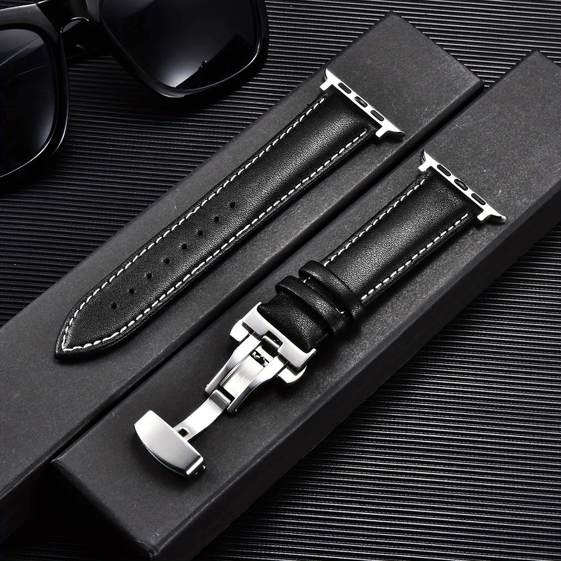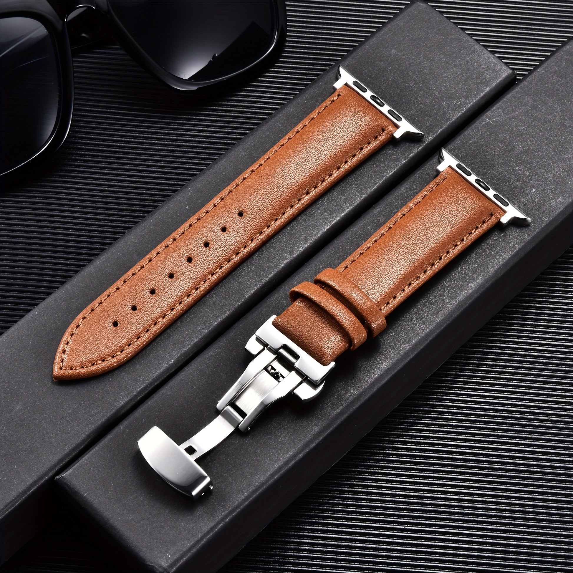 PU Leather Watch Band with Butterfly Clasp Compatible with All Apple Watch Models 38/40/41mm 42/44/45/49mm