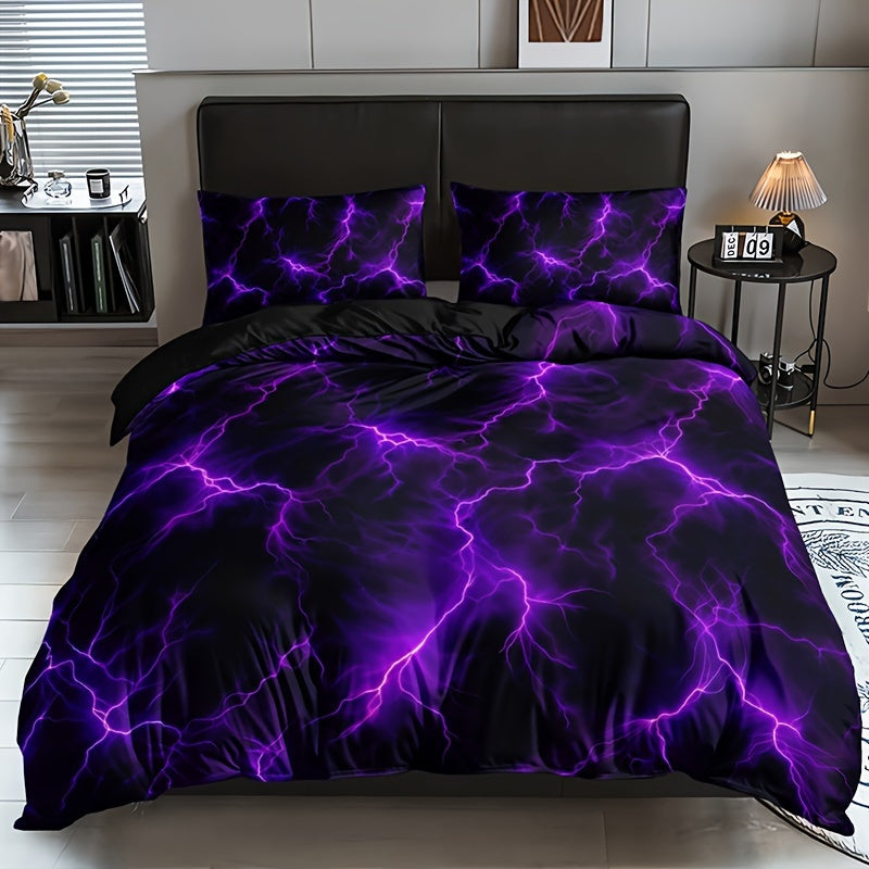 Purple Lightning Line Duvet Cover Set 3 Pieces Includes Duvet Cover and Pillowcases Home Dorm
