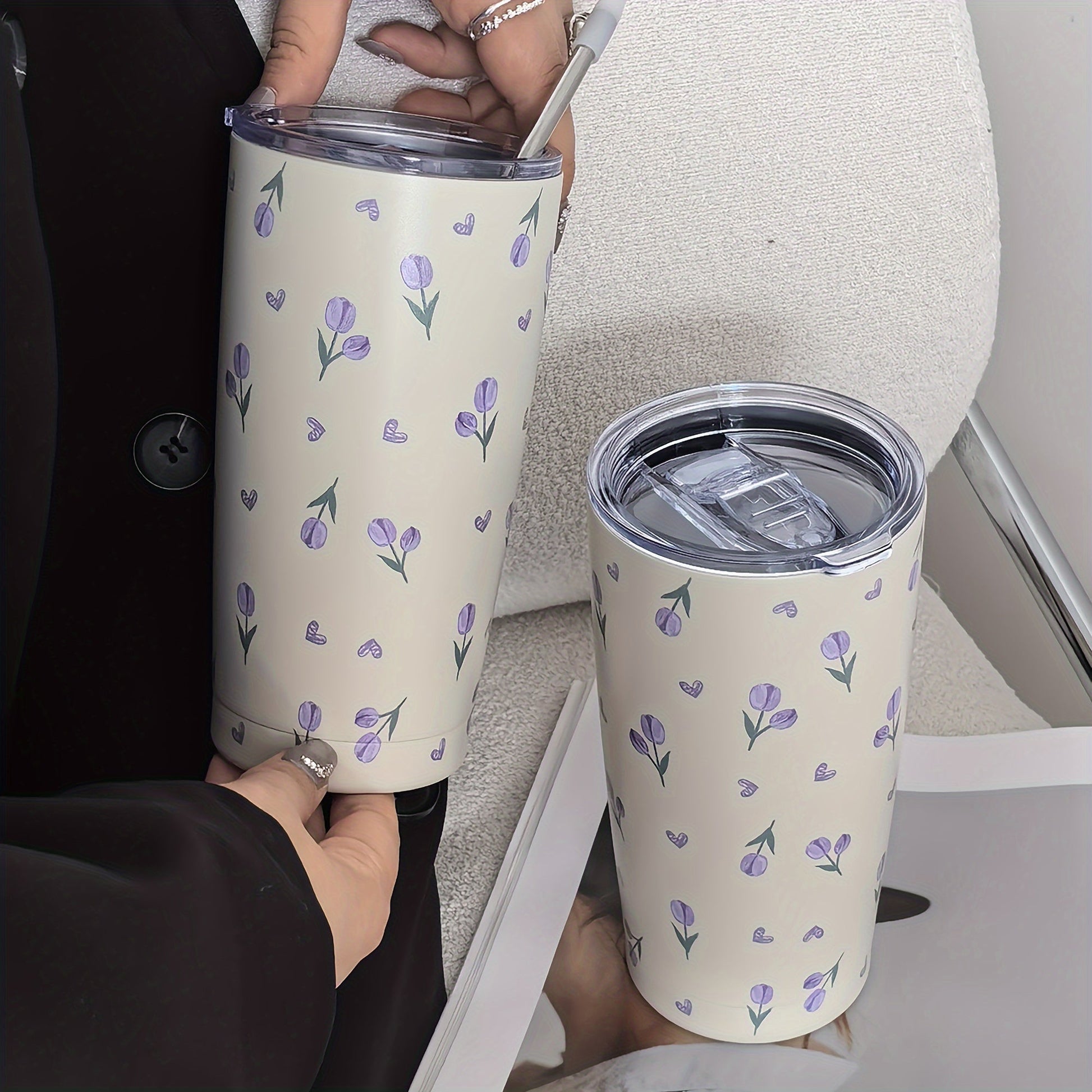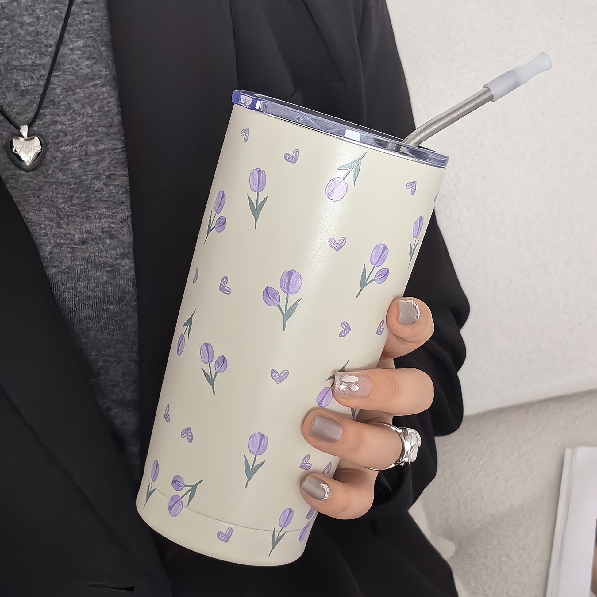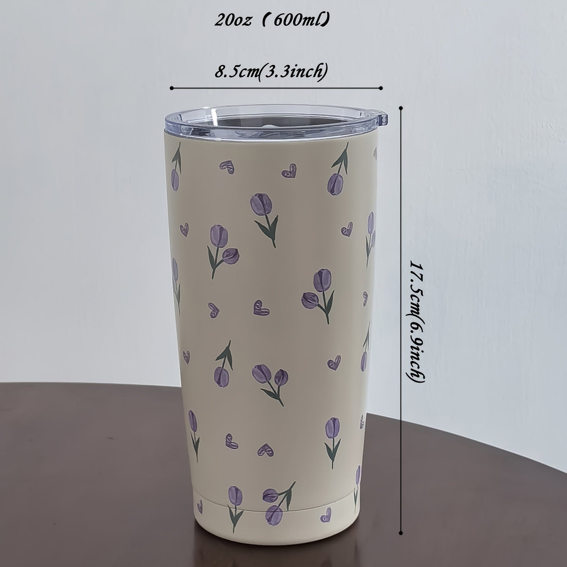 Purple Love Tulip Tumbler 16oz Double Walled Stainless Steel Water Bottle Travel Drinkware