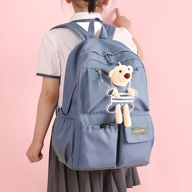 Purple Women's Casual Nylon Backpack with Laptop Compartment and Tassel