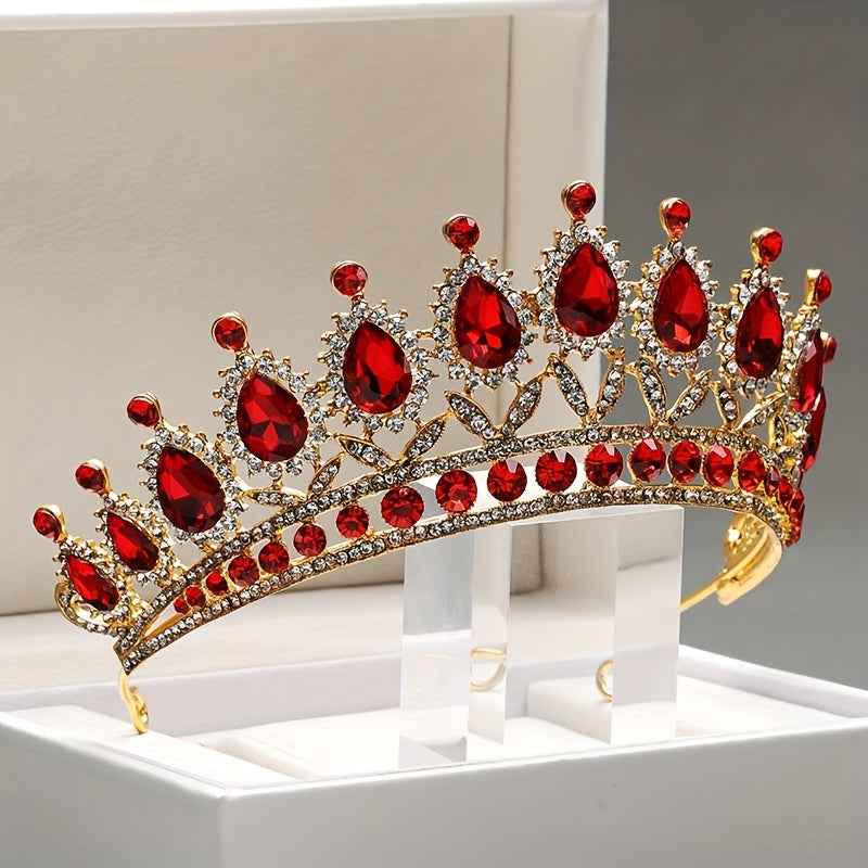 Red Crystal Alloy Queen's Crown Tiara Headband for Bridal Wedding Party