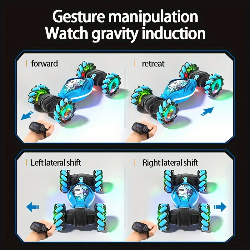 Off-Road 4WD RC Car with Gesture Sensing, Rechargeable Battery, Weather Resistant Animal Theme Blue Red for Ages 14+