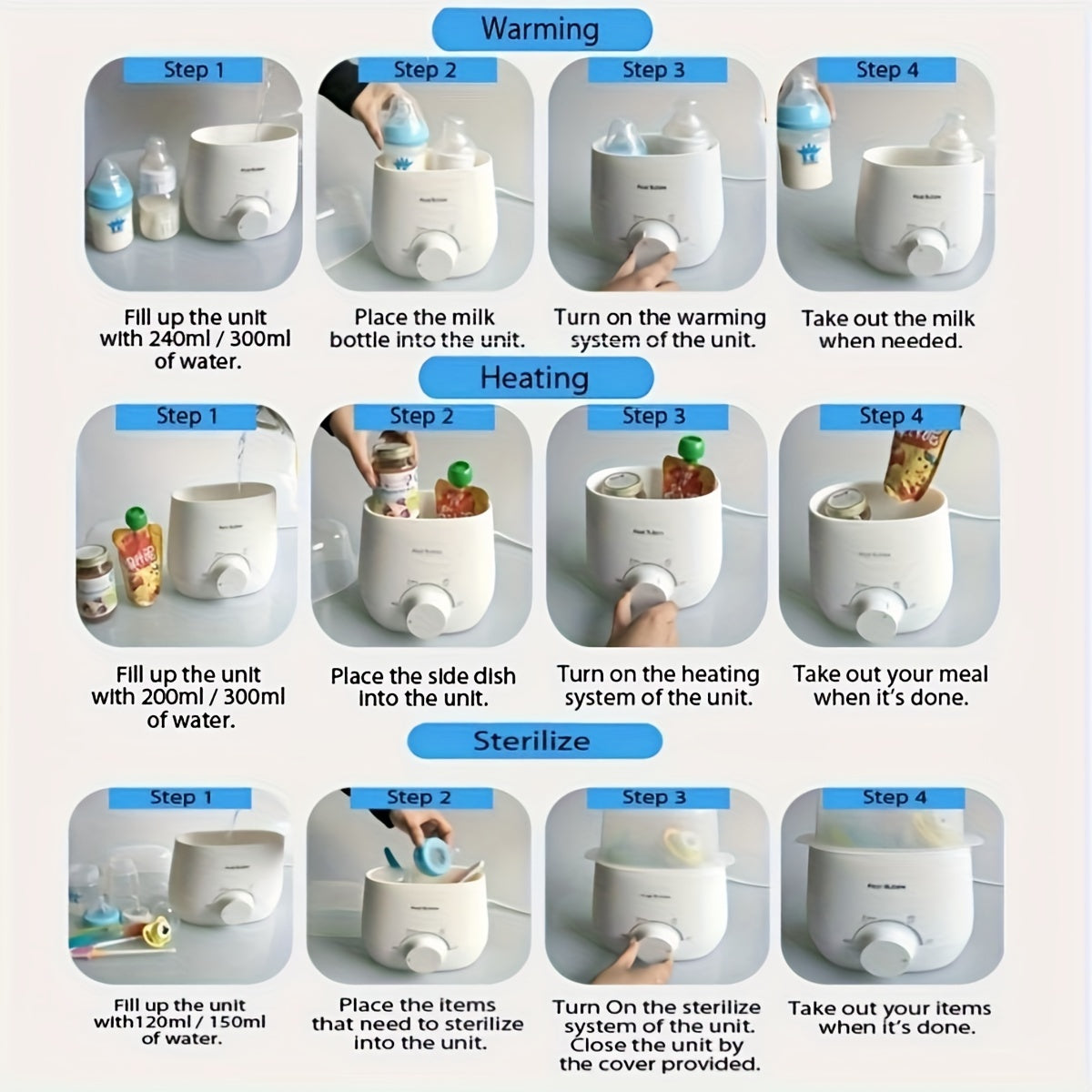 Double Bottle Warmer Sterilizer 220V Plastic No Battery Required