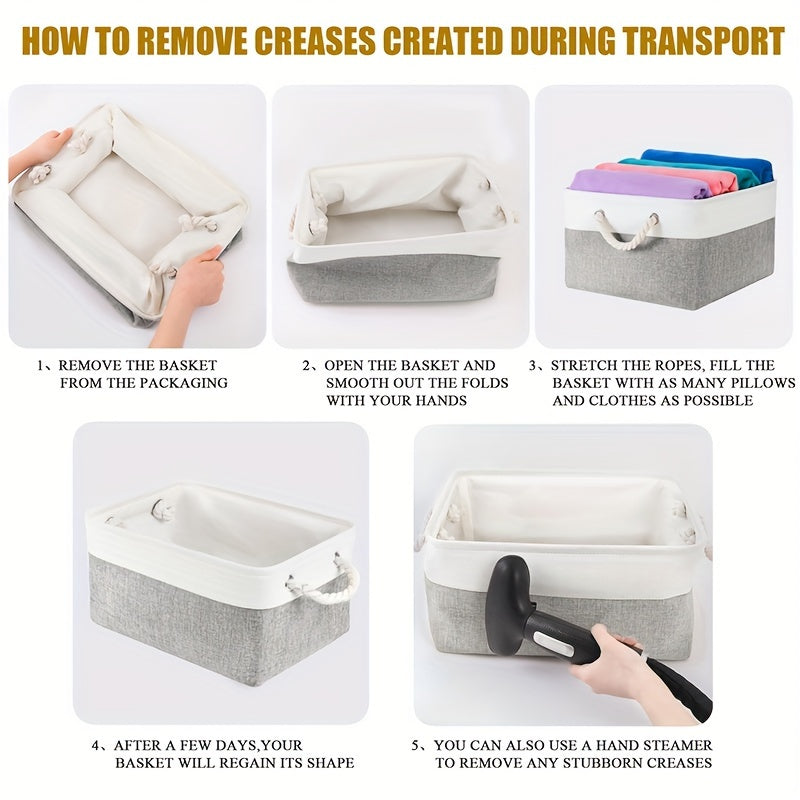 Rectangular Foldable Storage Basket with Handle for Clothes Toys Books in Home and Office