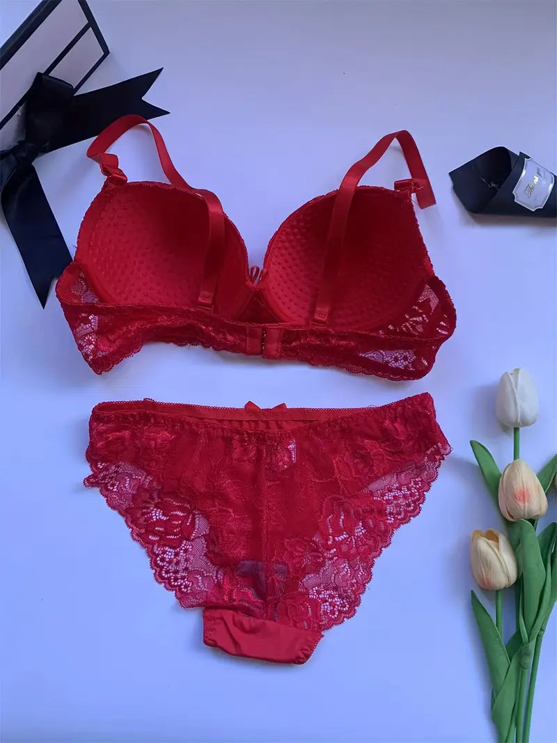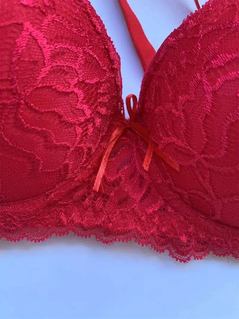 Lingerie Set for Adults Red Lace Bralette and Thong Medium Support Polyamide Spandex Low-Rise