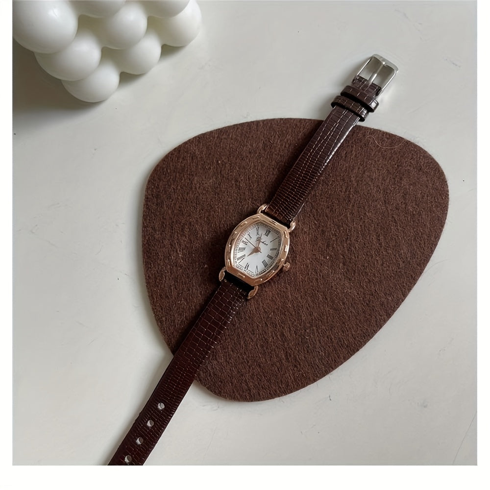 Vintage Oval Wrist Watch with Petite Artistic Dial and Brown Leather Strap
