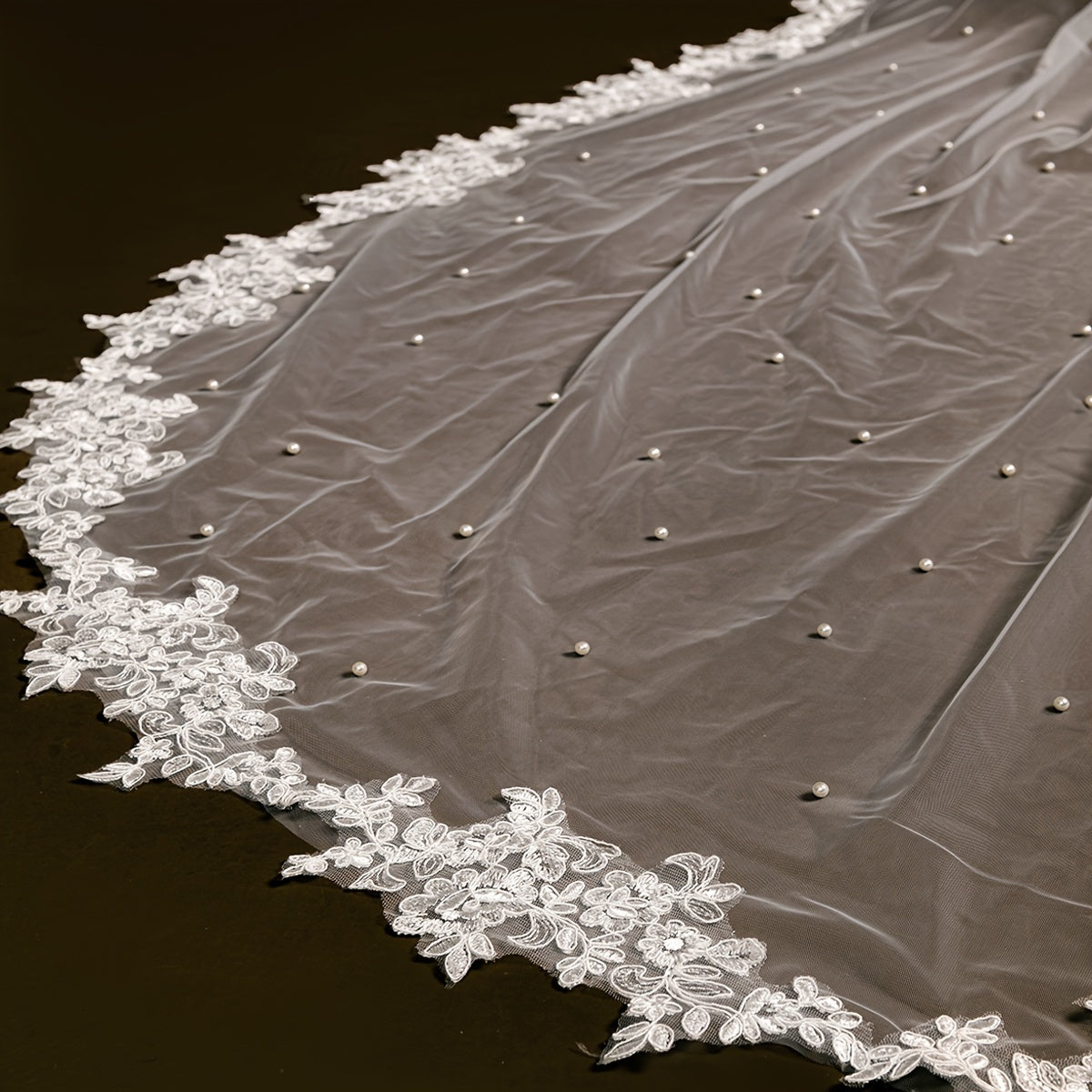 Lace Bridal Shawl Cape with Faux Pearl Decoration for Wedding Brides