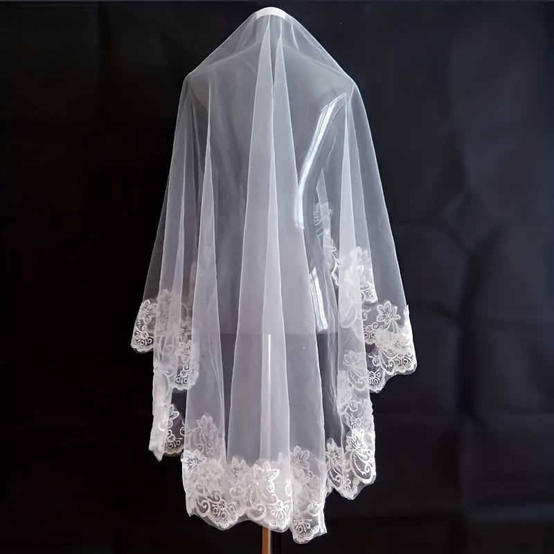 Women's Wedding Veil with Floral Lace Edge Elegant Bridal Accessory