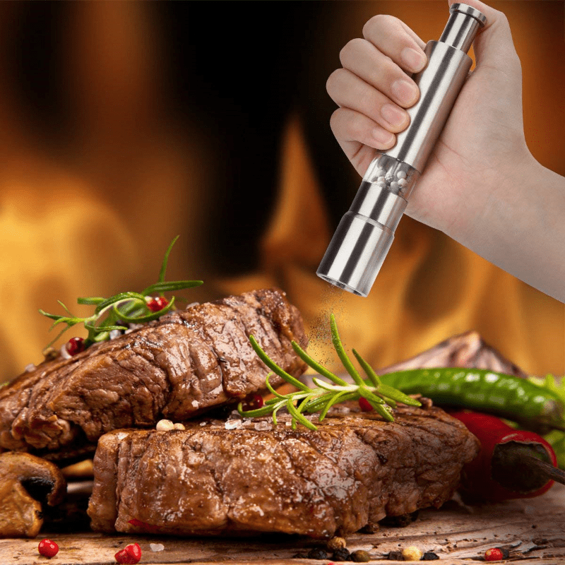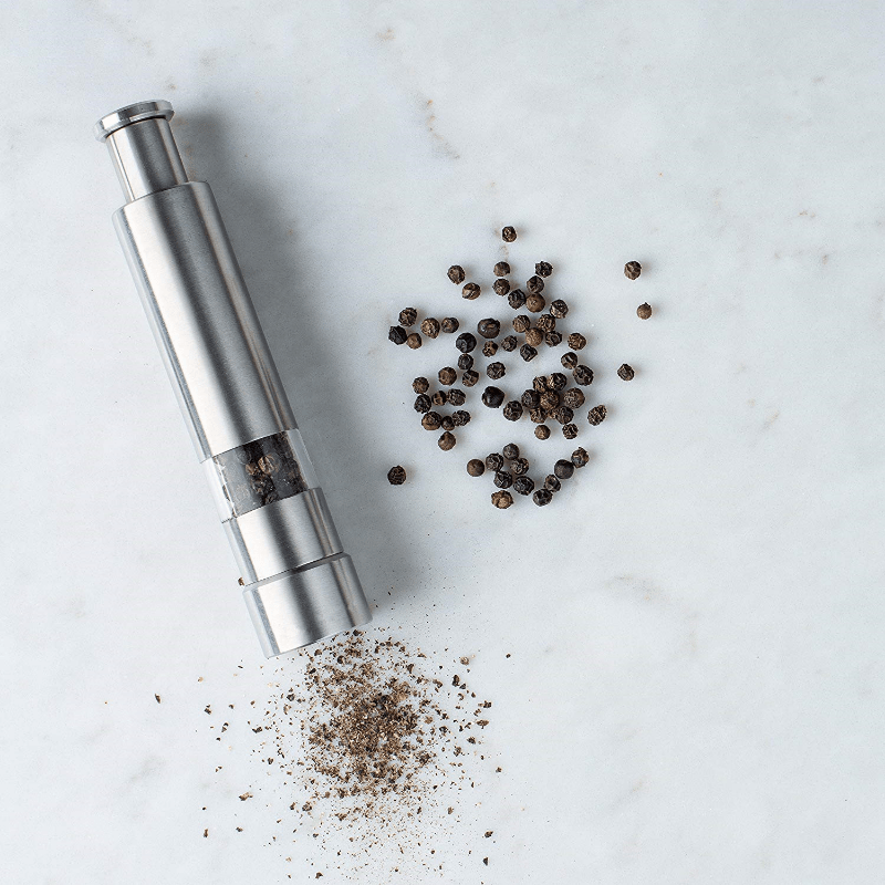 Stainless Steel Salt and Pepper Grinder with Thumb Pump Design for Kitchen Use