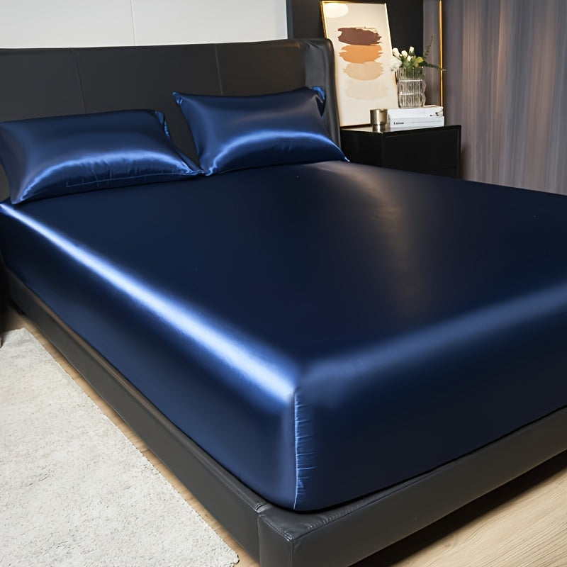 Satin Fitted Sheet Set 3 Pieces Includes Fitted Sheet and Pillowcases All Seasons