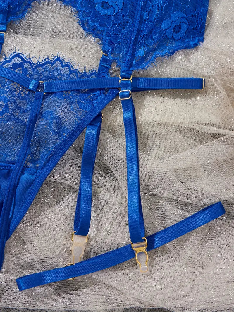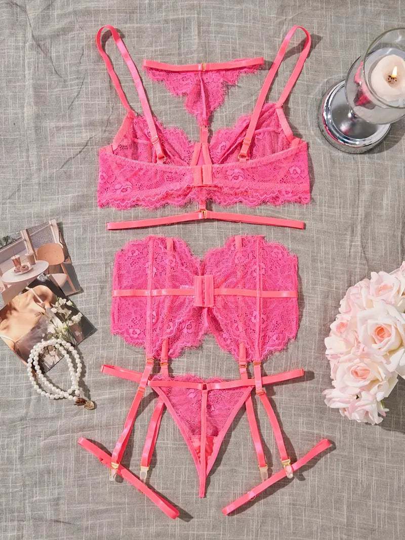 See-Through Lace Lingerie Set for Women with Bra and Thong