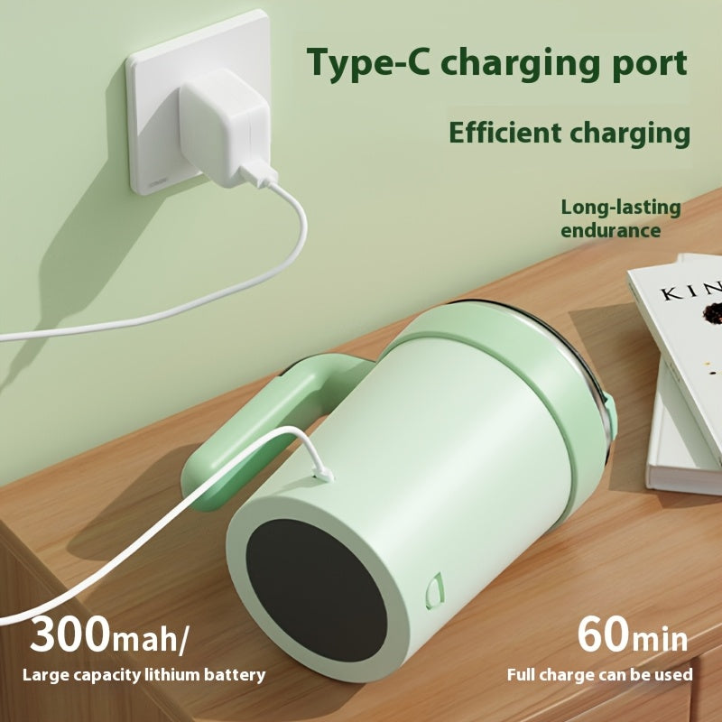 Self-Stirring Travel Mug with Temperature Display and Straw Creamy White