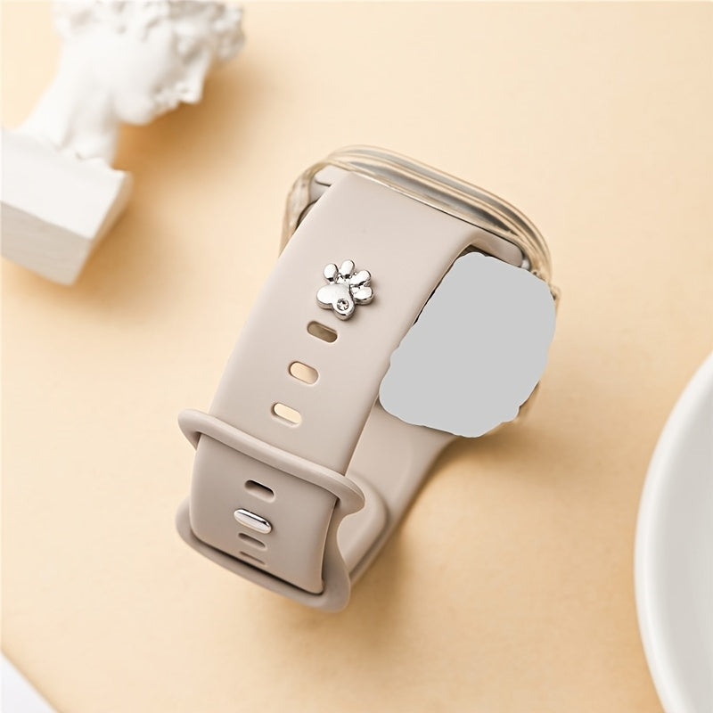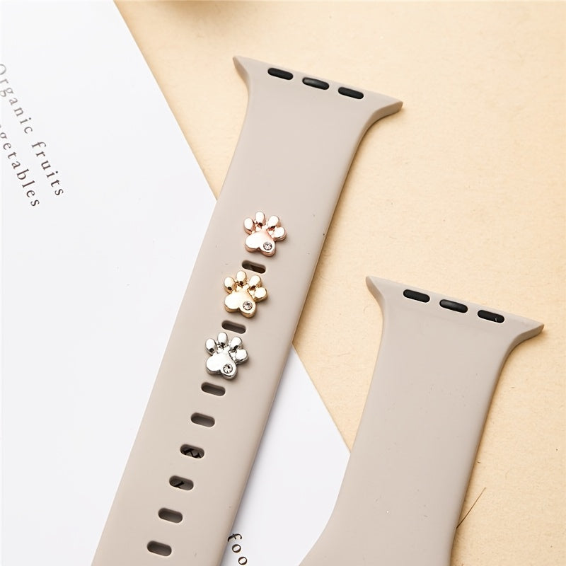 Set of 3 Dog Paw Rhinestone Nail Charms for Silicone Watch Bands Metal Decorative Accessories