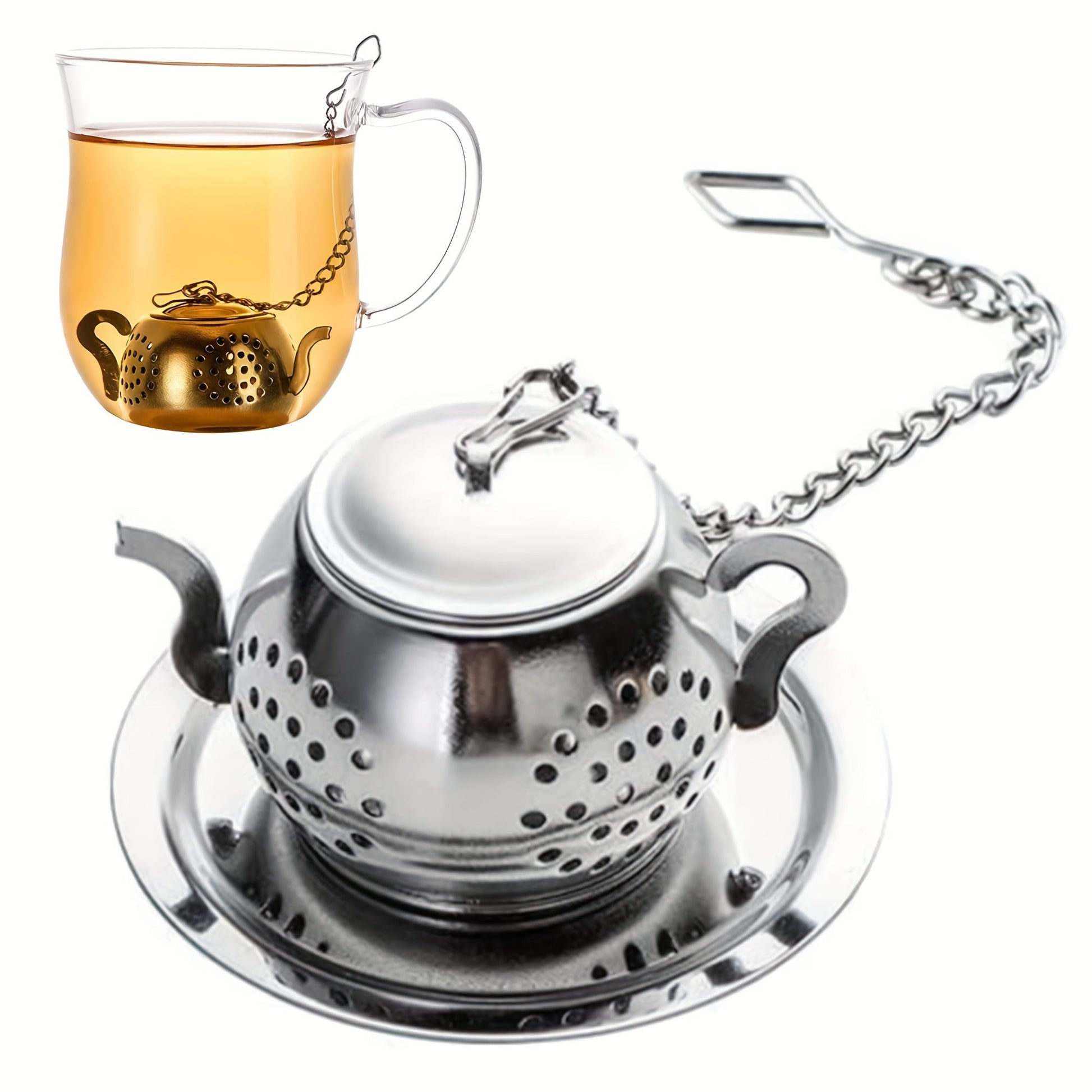 Stainless Steel Teapot-Shaped Tea Infuser with Saucer, Fine Mesh Filter, Reusable