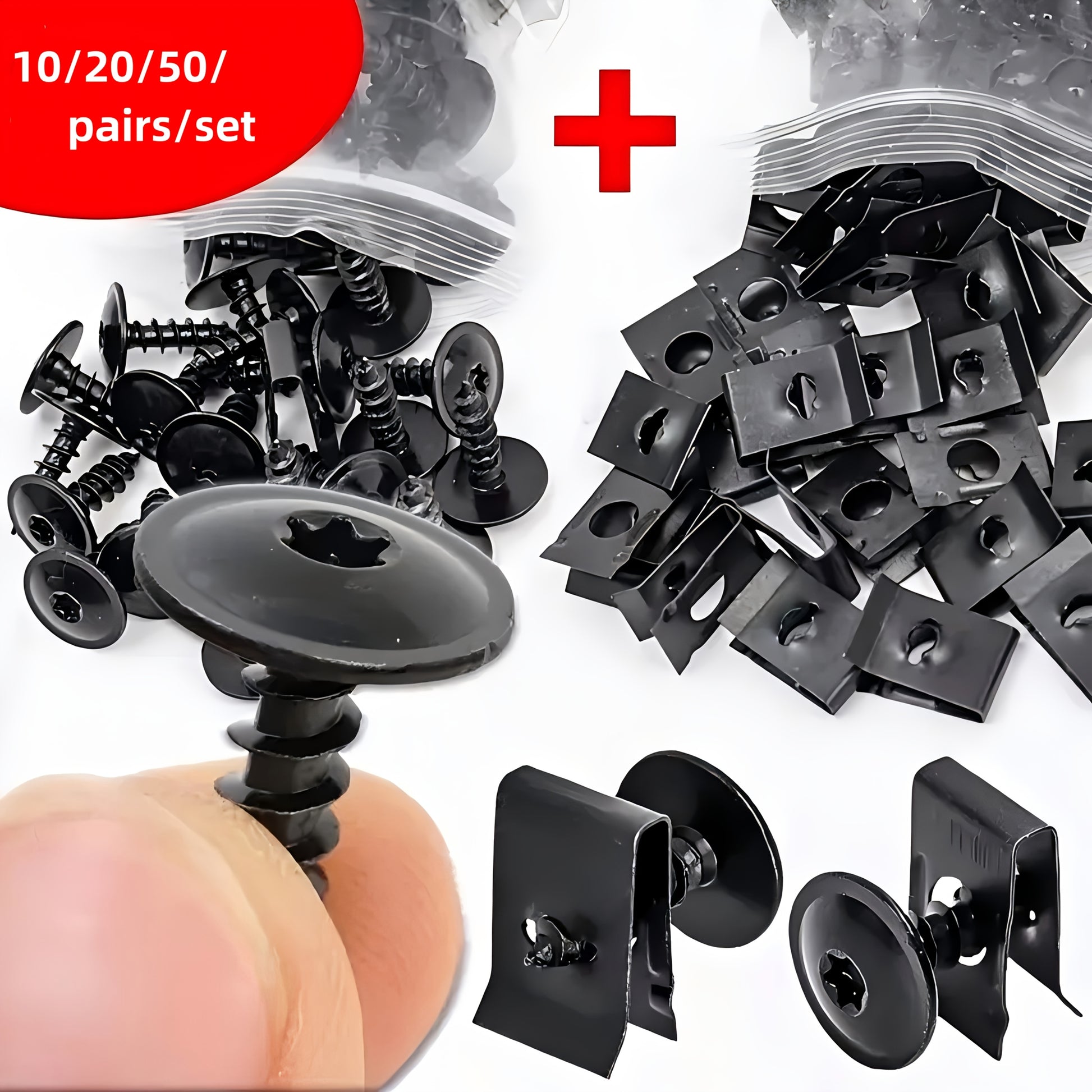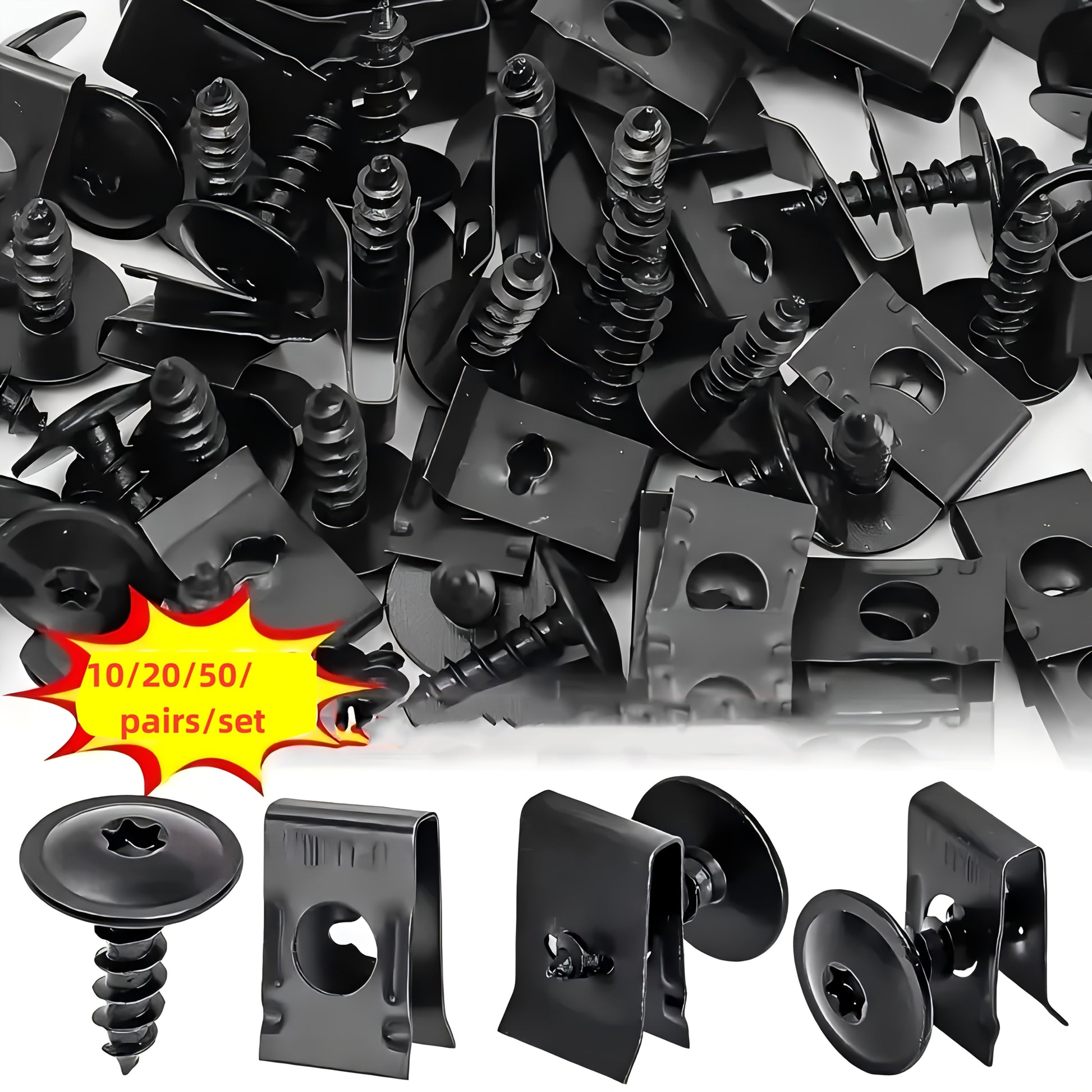 Set of 10/20/50 Metal U-Bolt Clips and Screws for Car Body Bumper Hardware
