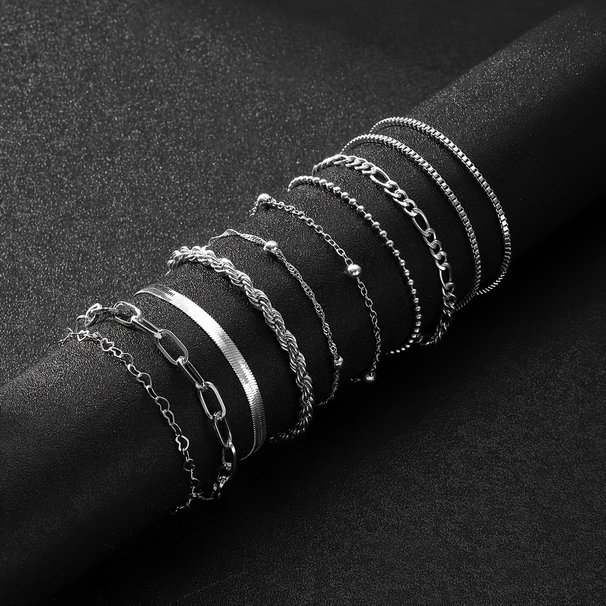 Set of 10 Gold-Tone Multi-Layer Heart Charm Bracelets for Women