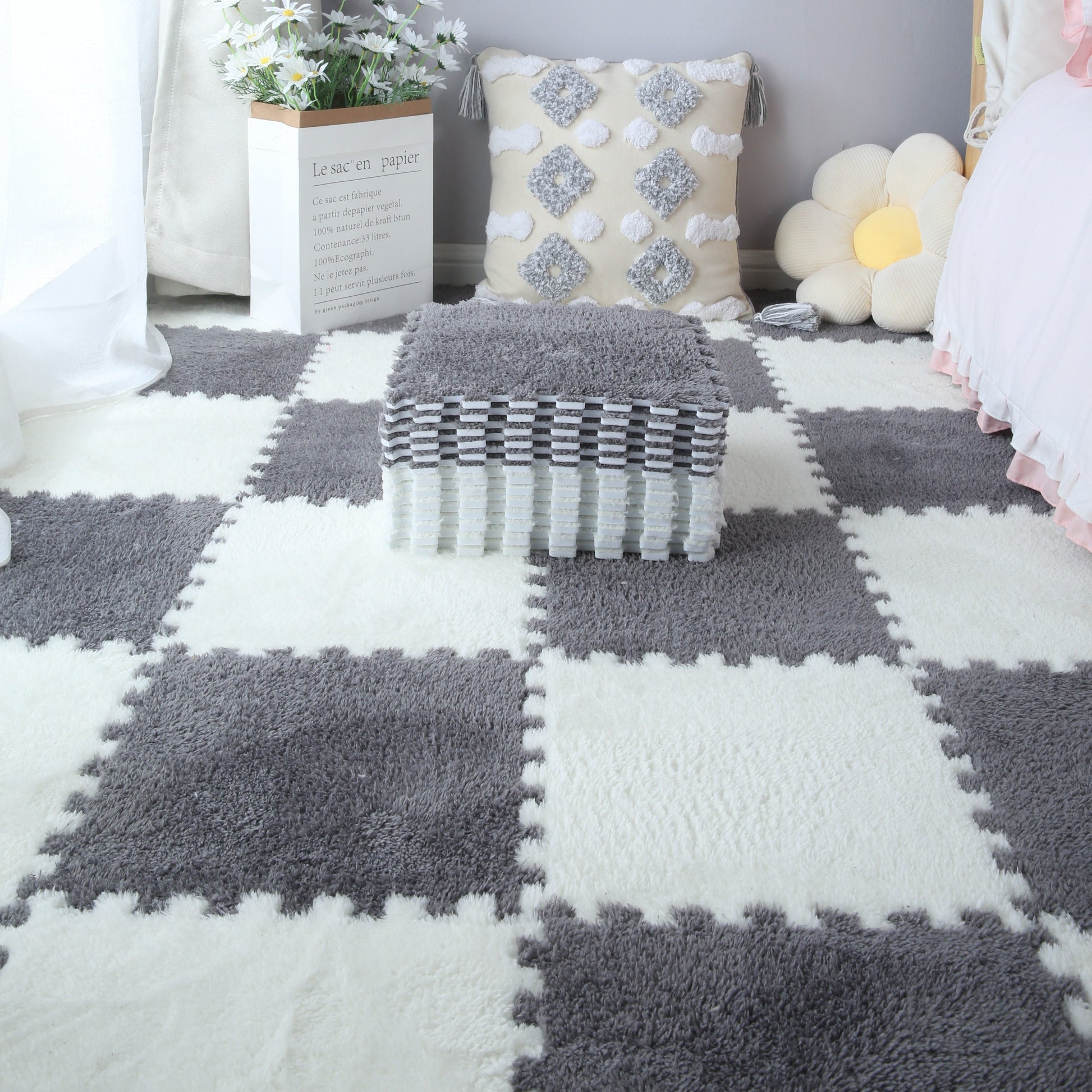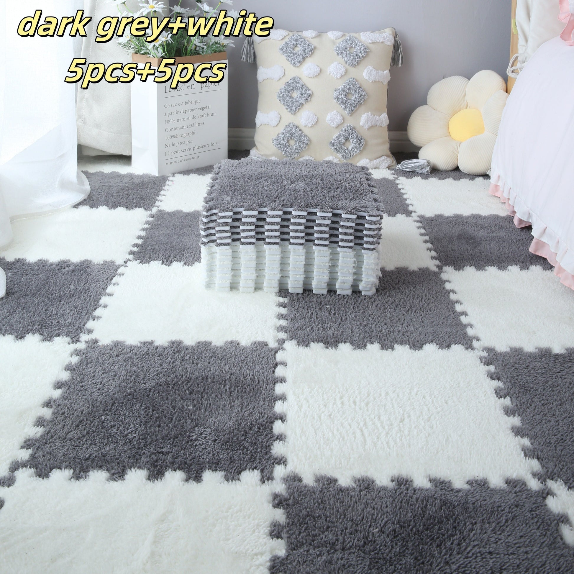 Set of 10 Interlocking Foam Play Mats for Kids and Pets Non-Slip Floor Tiles in Black Gray White
