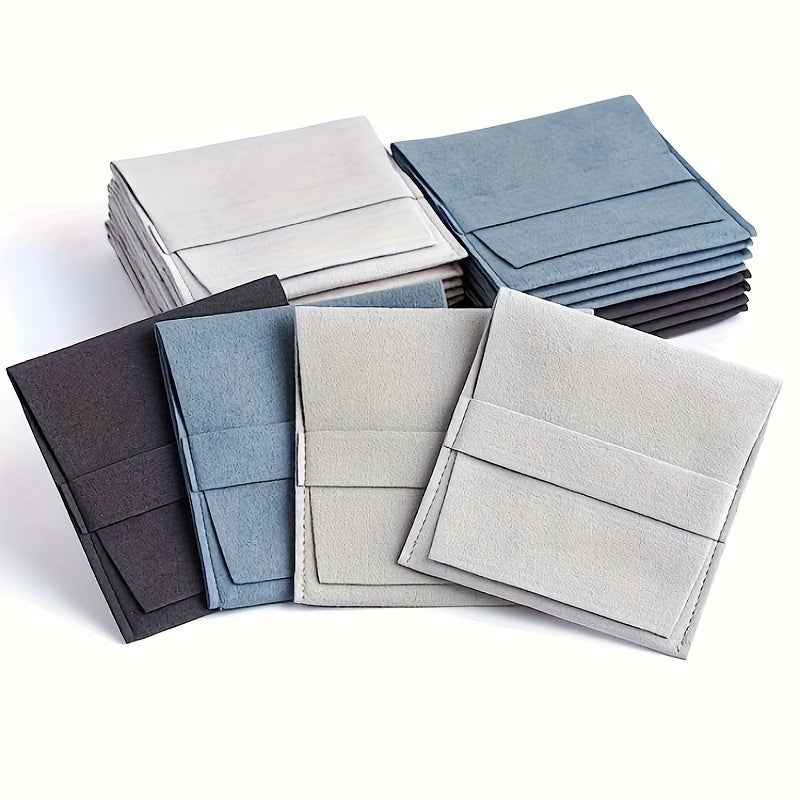 Set of 10 Jewelry Storage Bags with Lint Flounce and Snap Button Closures for Necklaces Earrings and Rings