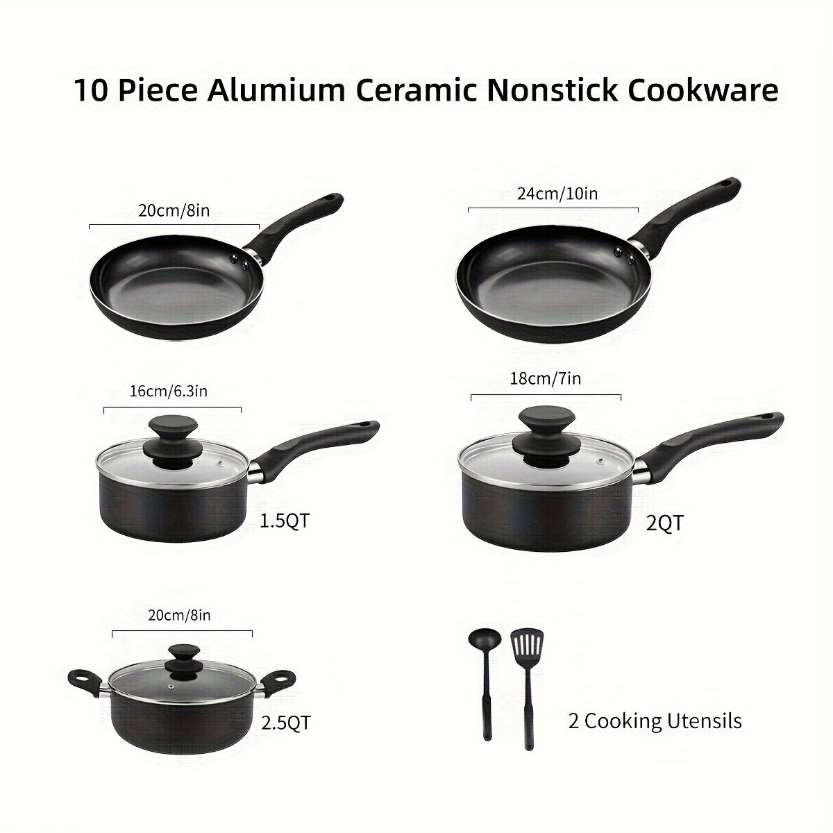 Set of 10 Nonstick Cookware Pots and Pans with Ceramic Coating for Family Use