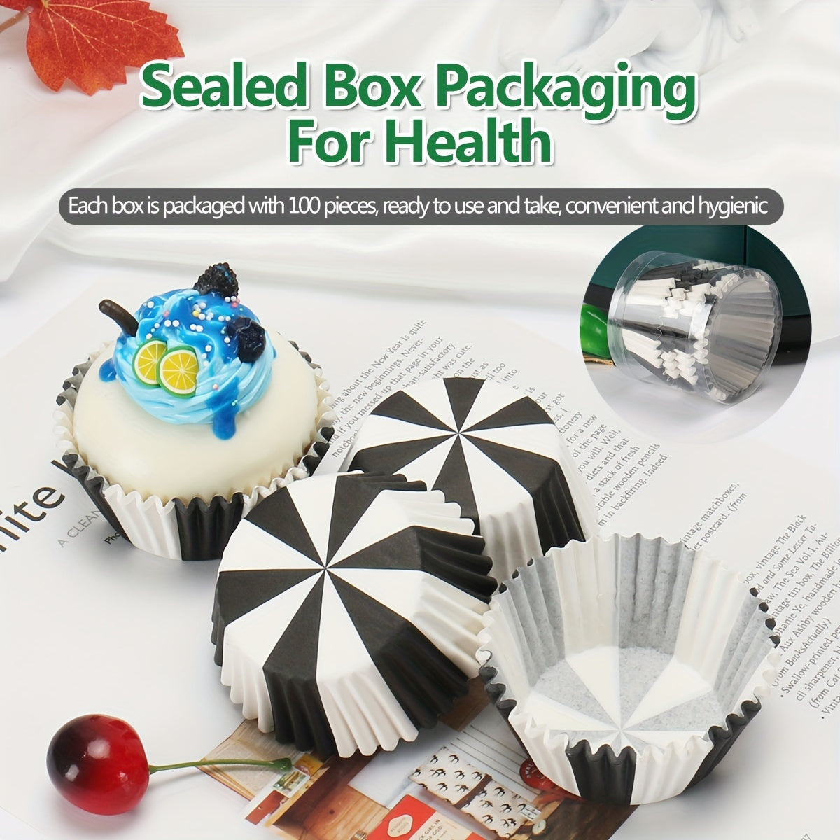 Set of 100 Black and White Disposable Muffin Cups Paper Cupcake Liners Baking Molds