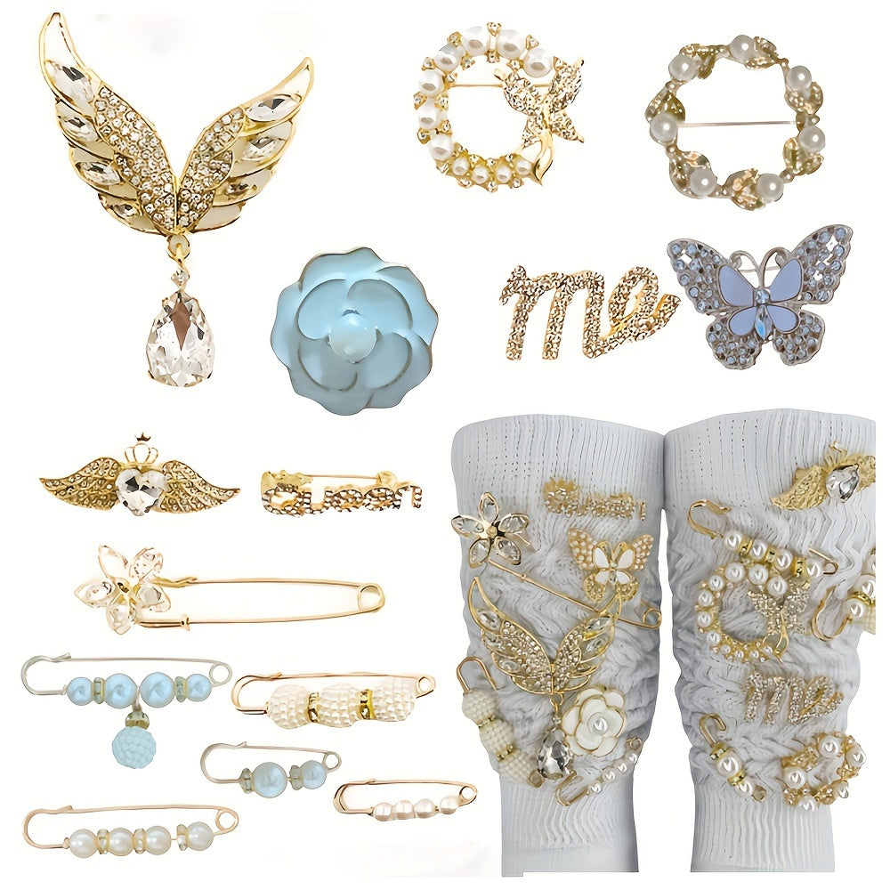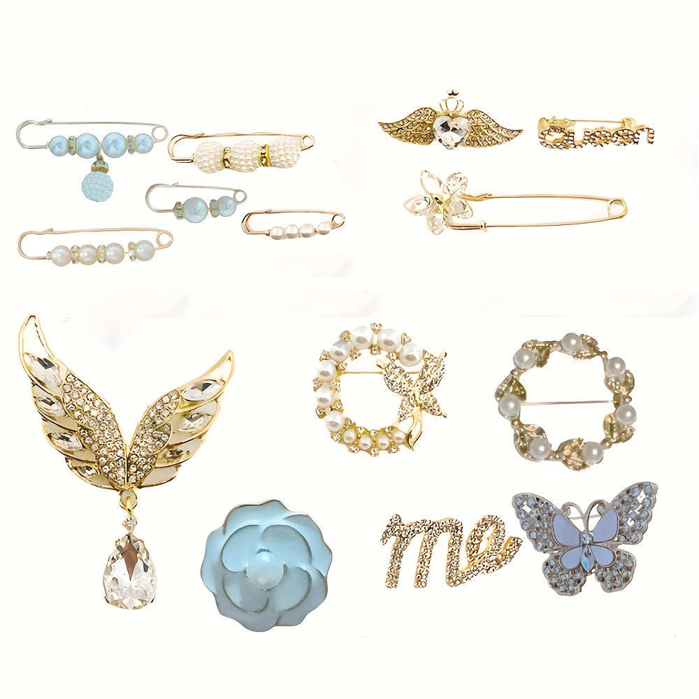 Set of 14 Elegant Alloy Brooch Pins Minimalist Irregular-Shaped Fashion Accessories Safety Pins for Clothing Hats