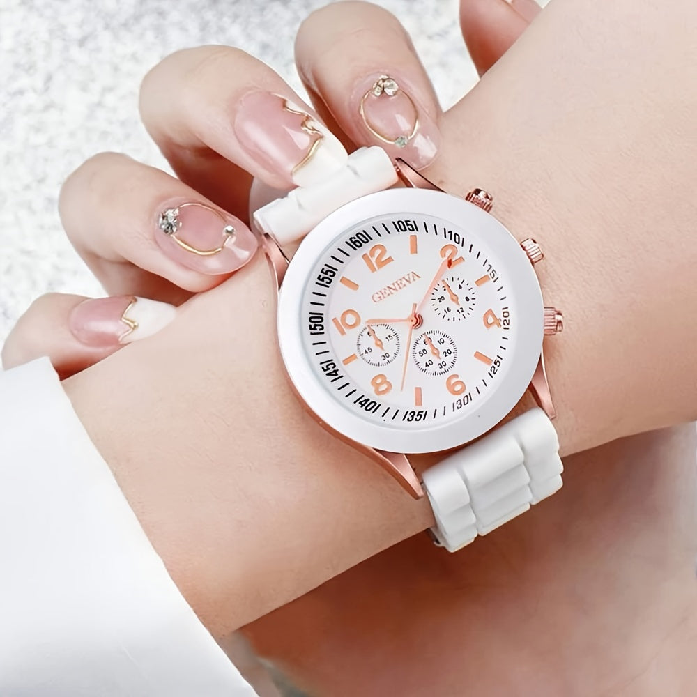 Set of 2 Black and White Quartz Watches with Silicone Bands for Couples Valentine’s Day Gift
