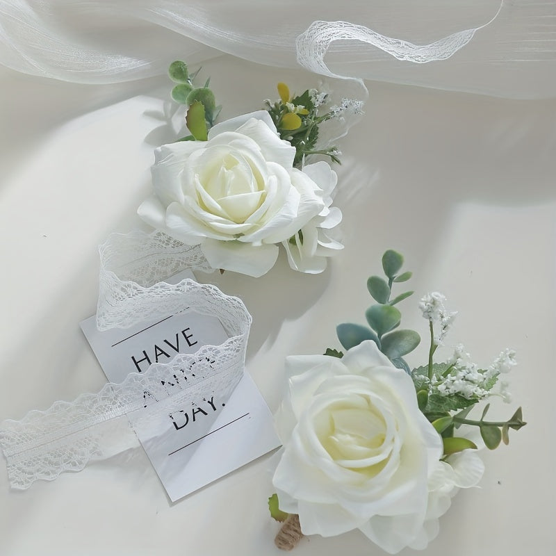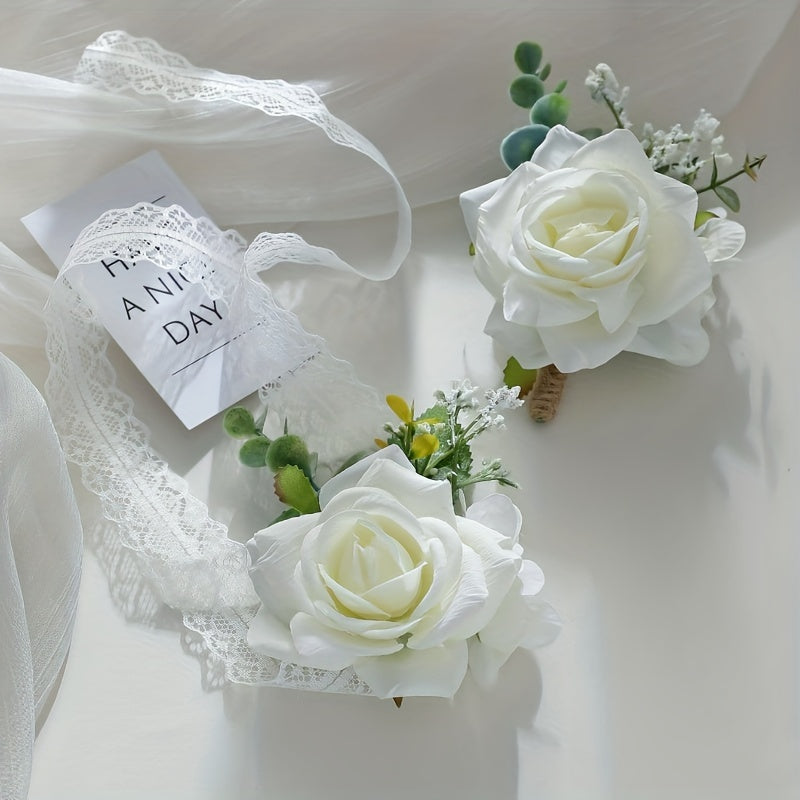 Set of 2 Bohemian Rose Flower Corsages and Wristlets for Weddings