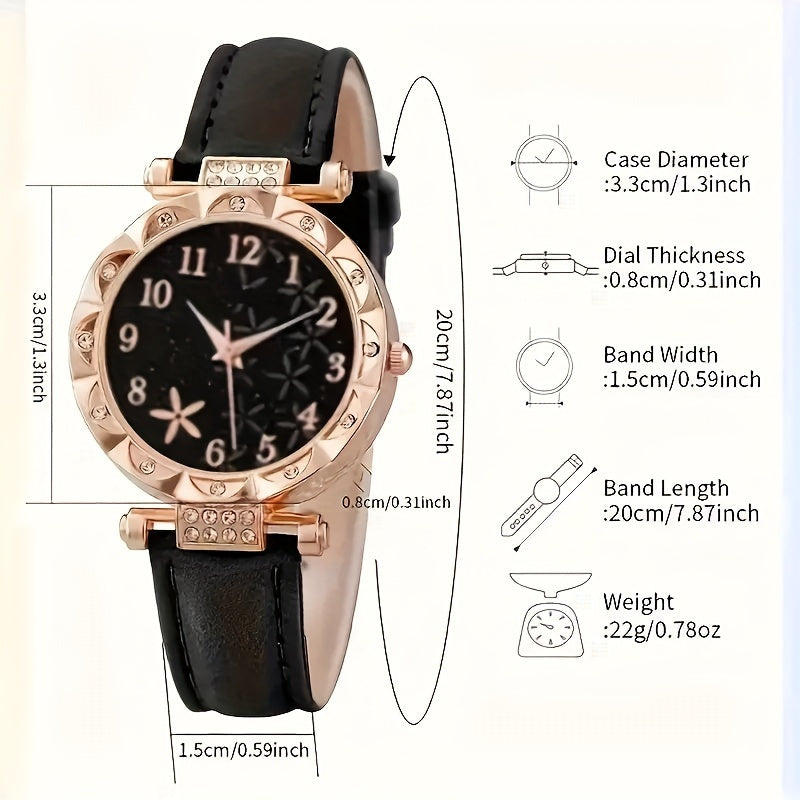Women's Quartz Watch and Bracelet Set with Faux Leather Strap and Round Zinc Alloy Case