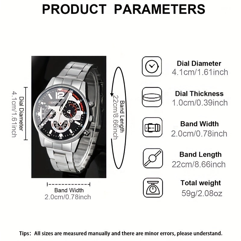 Set of 2 Men's Quartz Watches with Leather Straps, Precise Timekeeping, Suitable for Business and Casual Wear