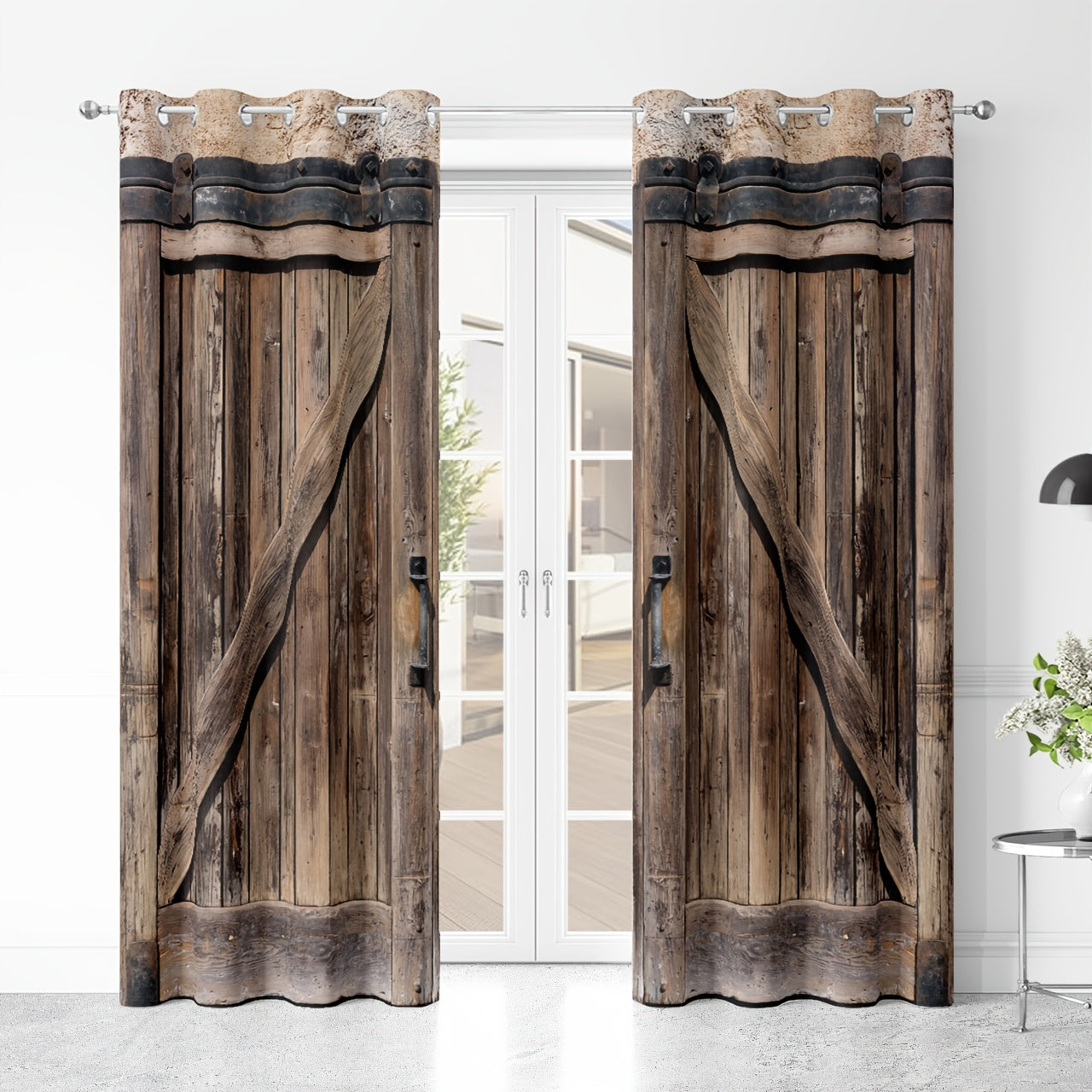 Set of 2 Rustic Wooden Door Design Curtains for Bathroom Living Room Bedroom Window Treatments