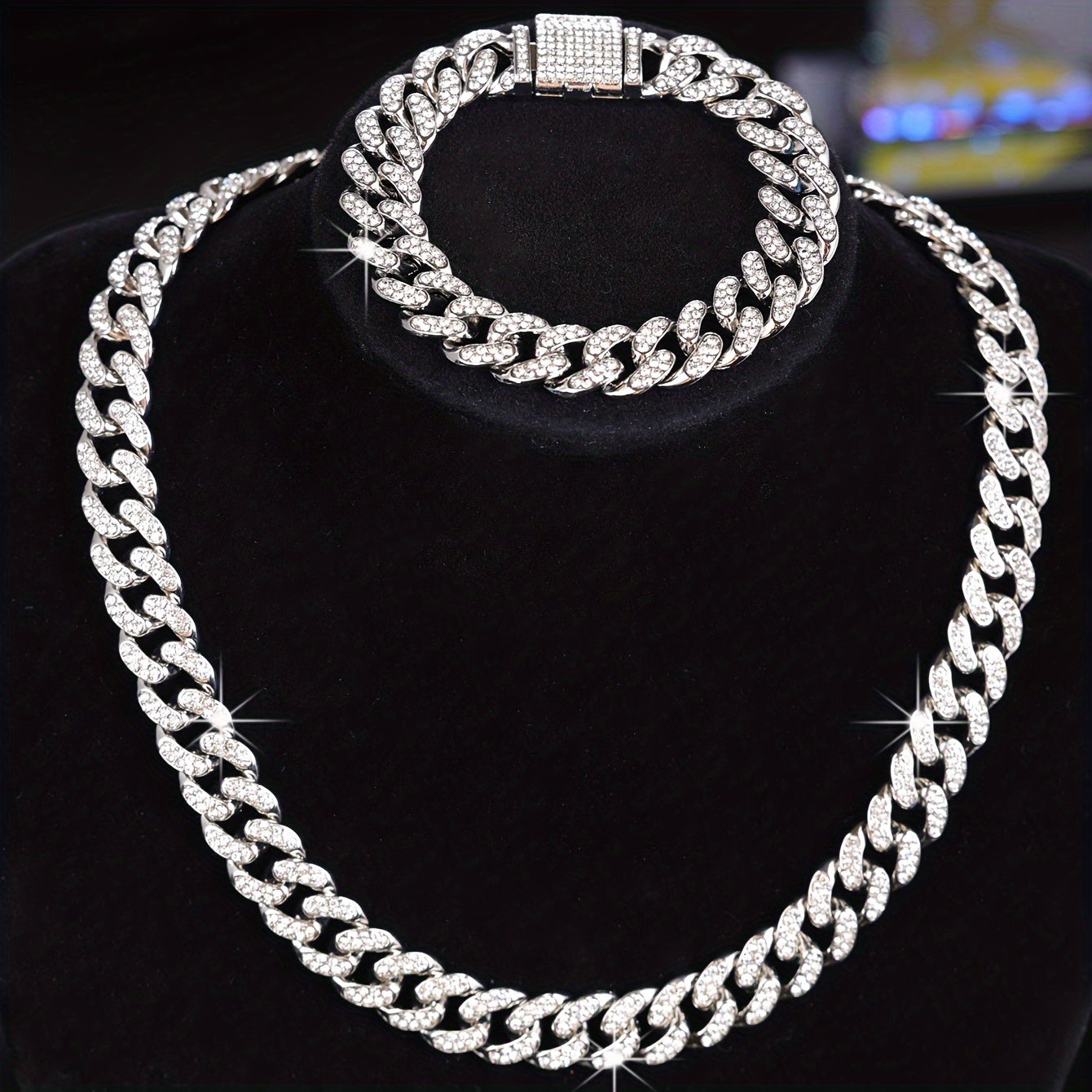 Set of 2 Hip Hop Style Necklace and Bracelet Jewelry for Men Women
