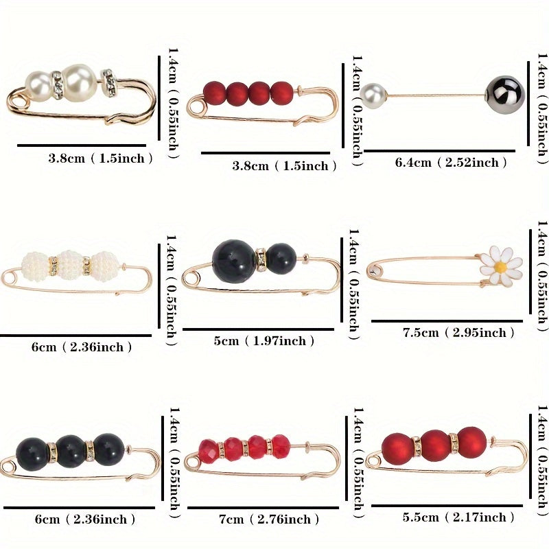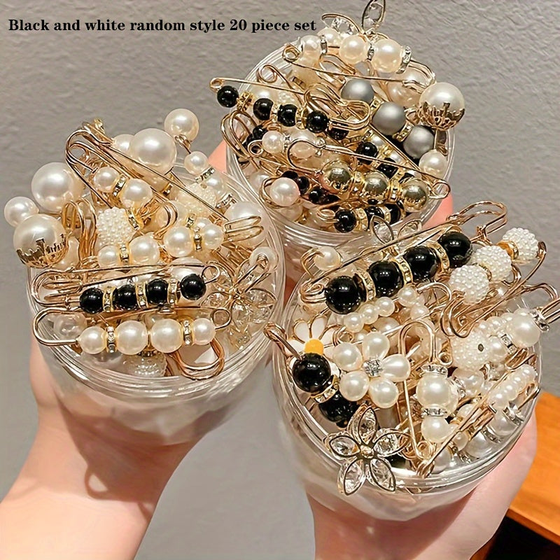 Set of 20 Artificial Pearl Brooches for Women with Sweater Clips, Waist Extenders, Safety Pins, Dress Decorations