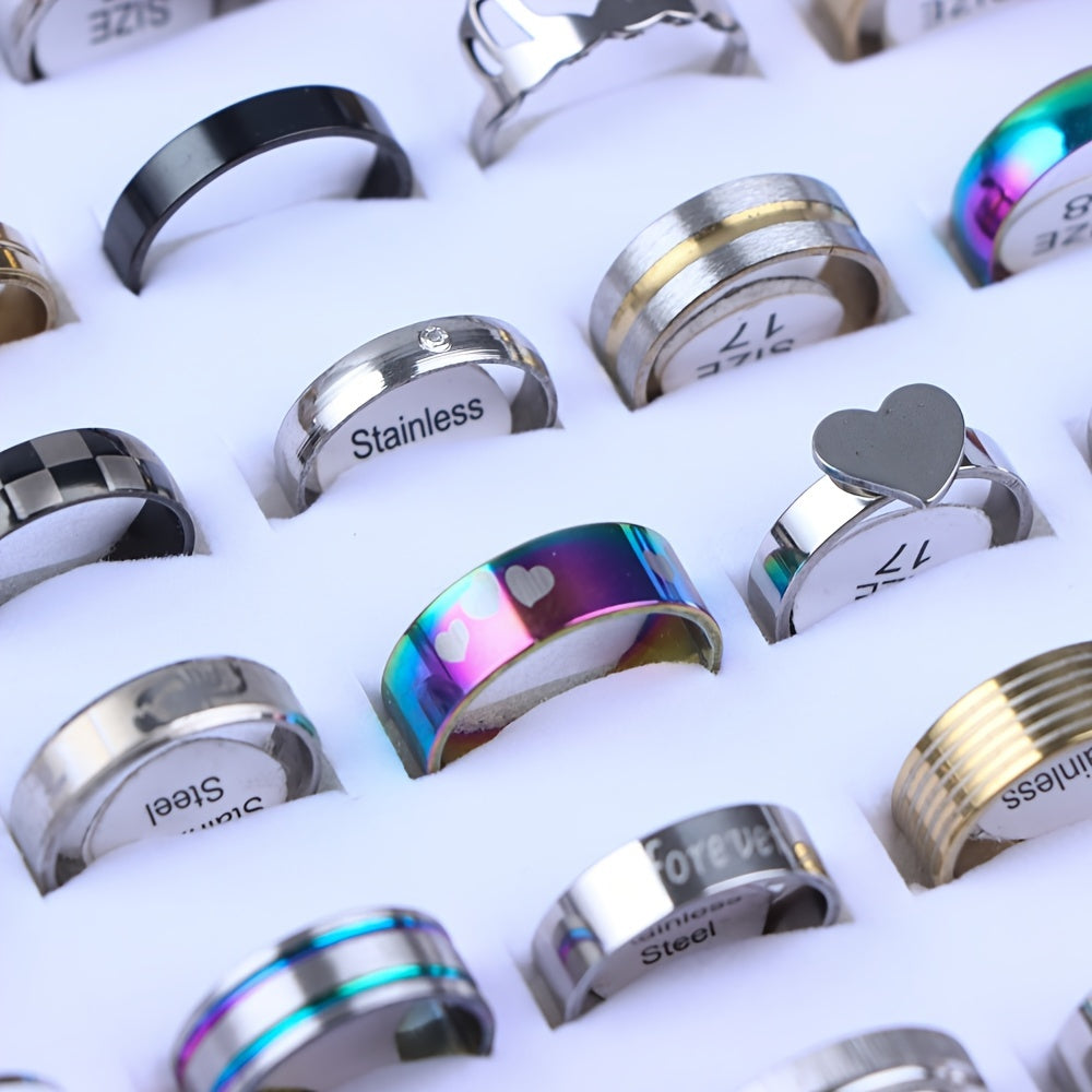 Set of 20 Stainless Steel Heart Design Fashion Rings for Men and Women