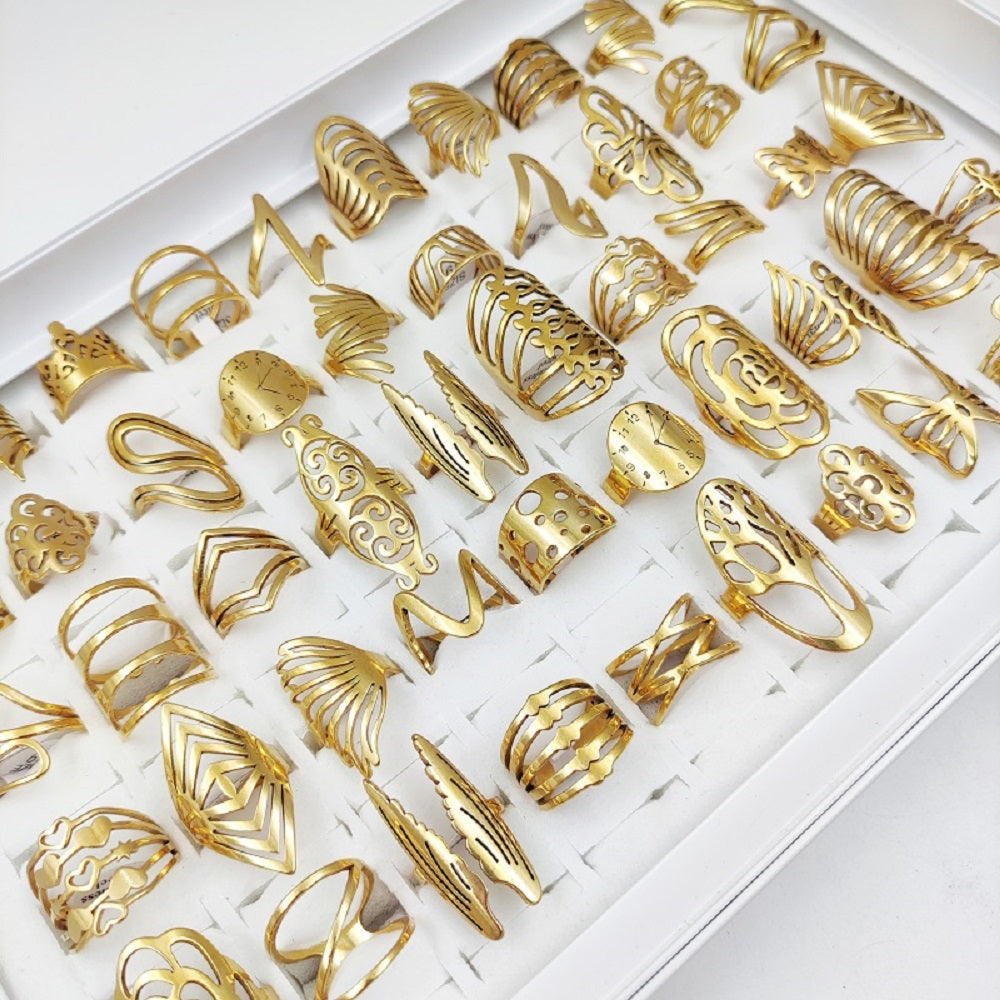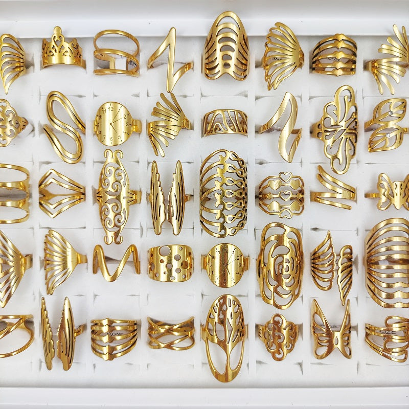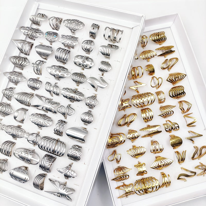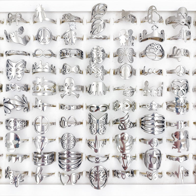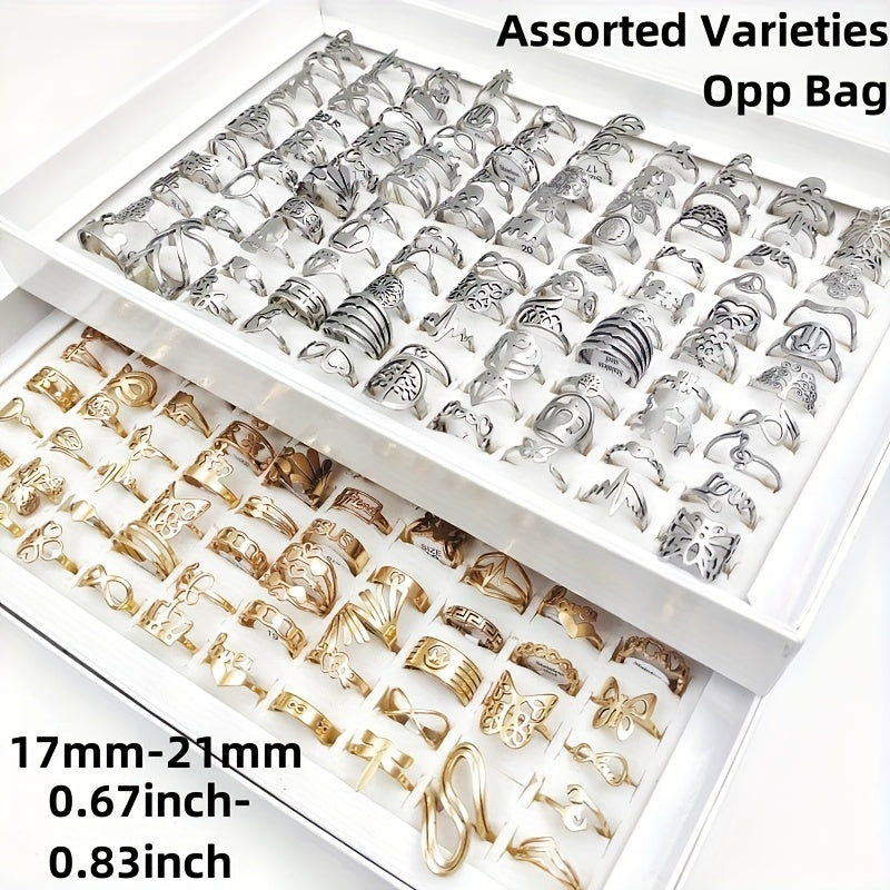 Set of 20 Stainless Steel Rings for Men Women Hollow Heart Butterfly Flower Geometric Gold Silver