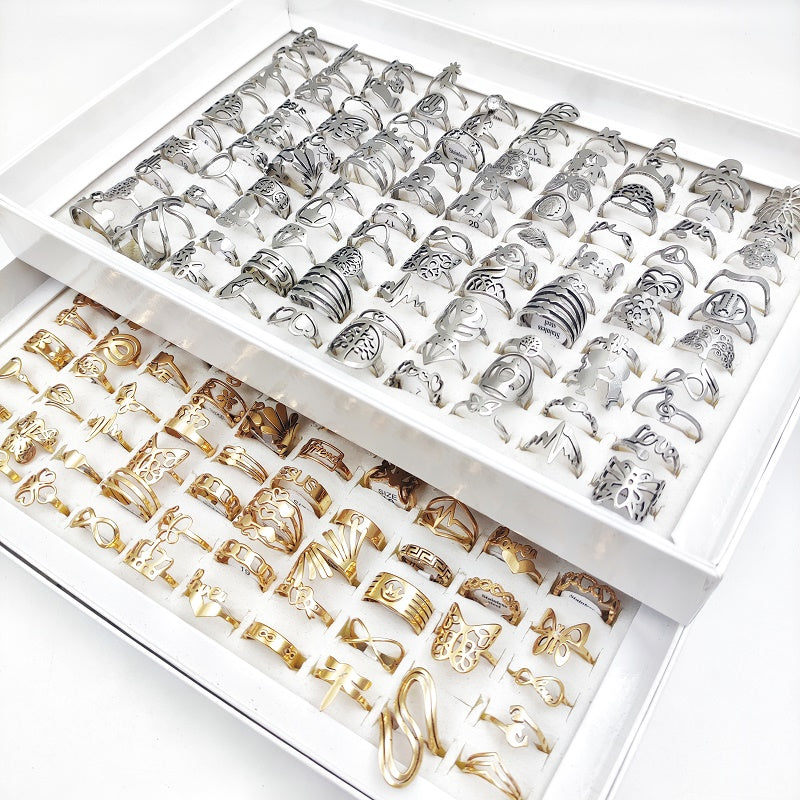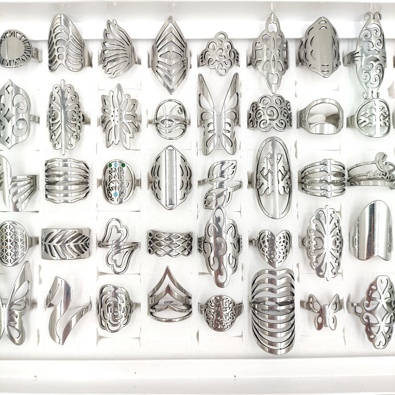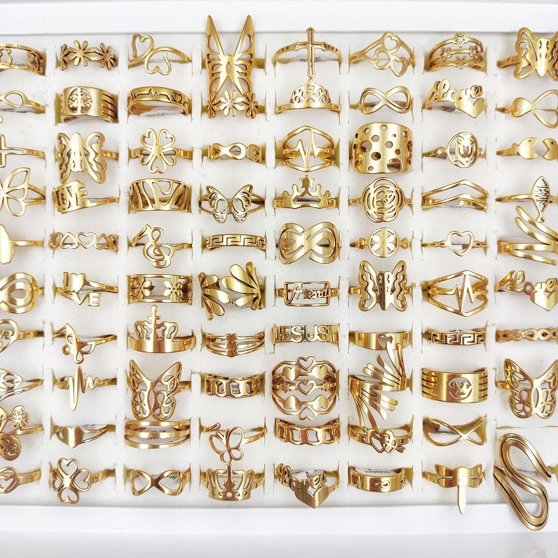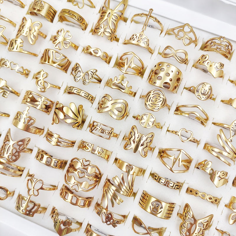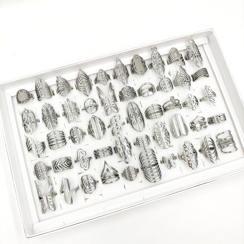 Set of 20 Stainless Steel Rings for Men Women Hollow Heart Butterfly Flower Geometric Gold Silver
