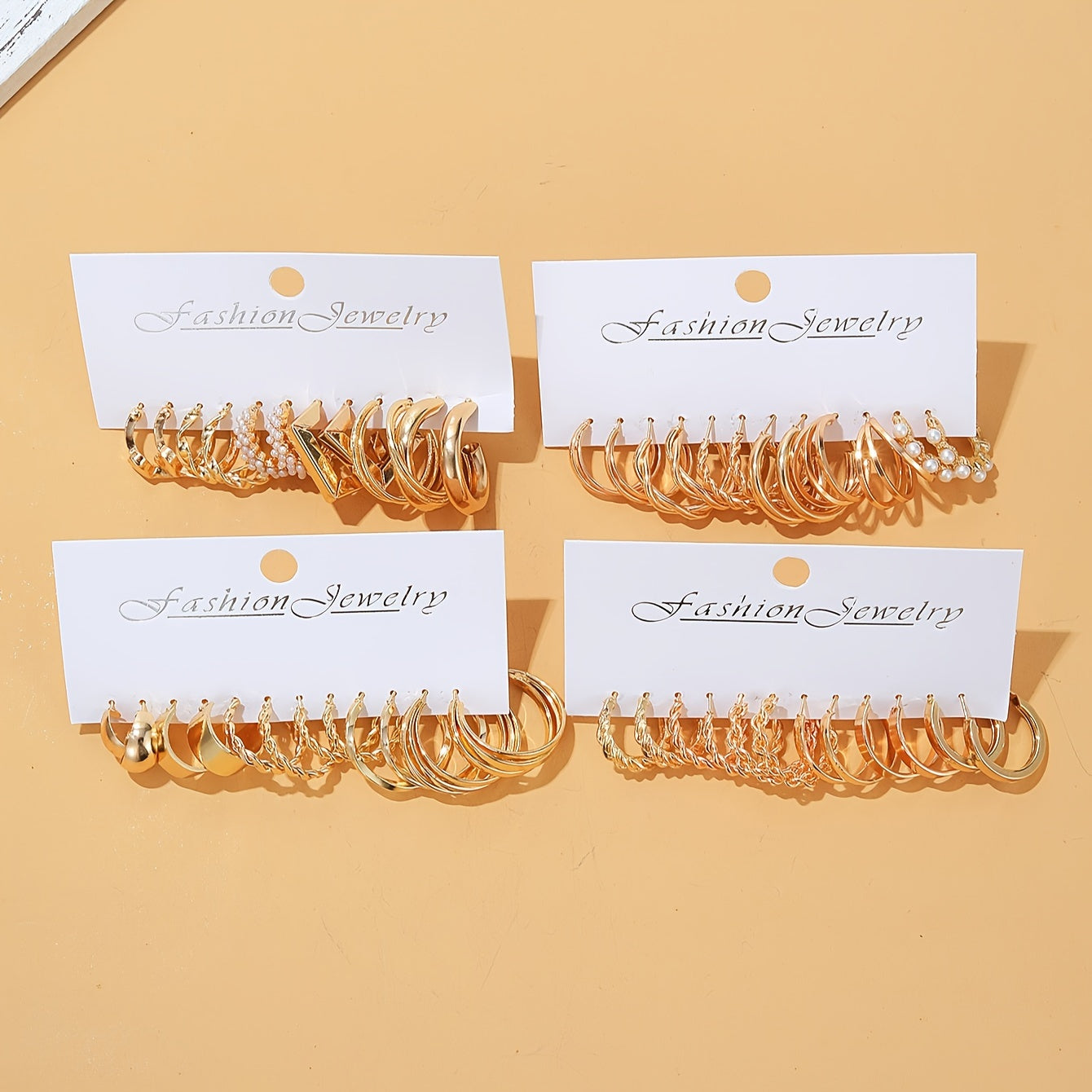 Set of 24 Heart Hoop Earrings with Imitation Pearls and Alloy Posts for Women Girls Daily Wear Gift